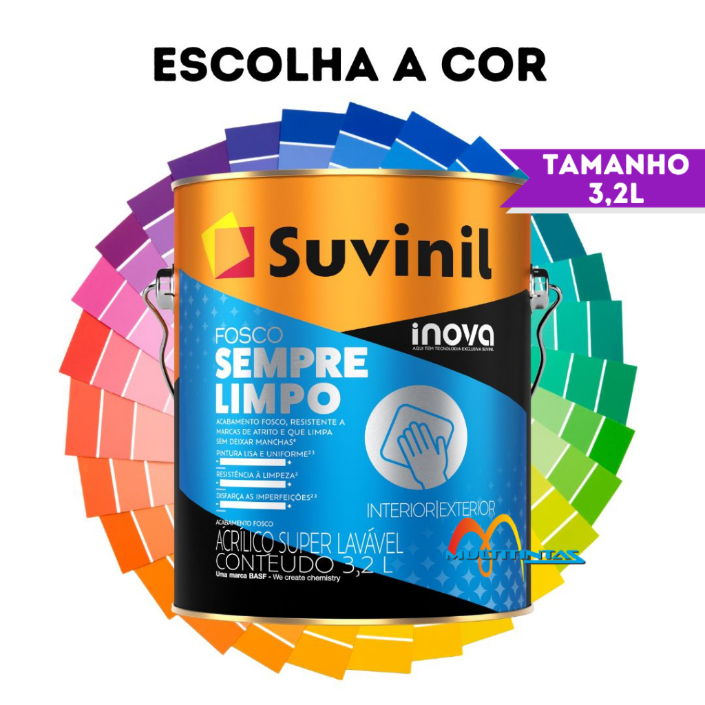 Tinta Acrílica Lavável Fosco 3,2l Inova Sempre Limpo Suvinil Escolha A Cor