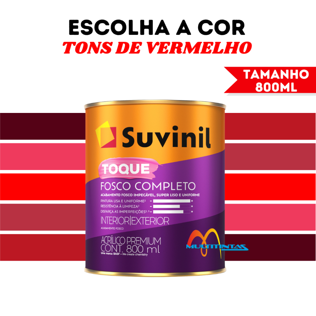 Tinta Acrílica Fosco 800ml Tons de Vermelho Toque Fosco Completo Parede Suvinil