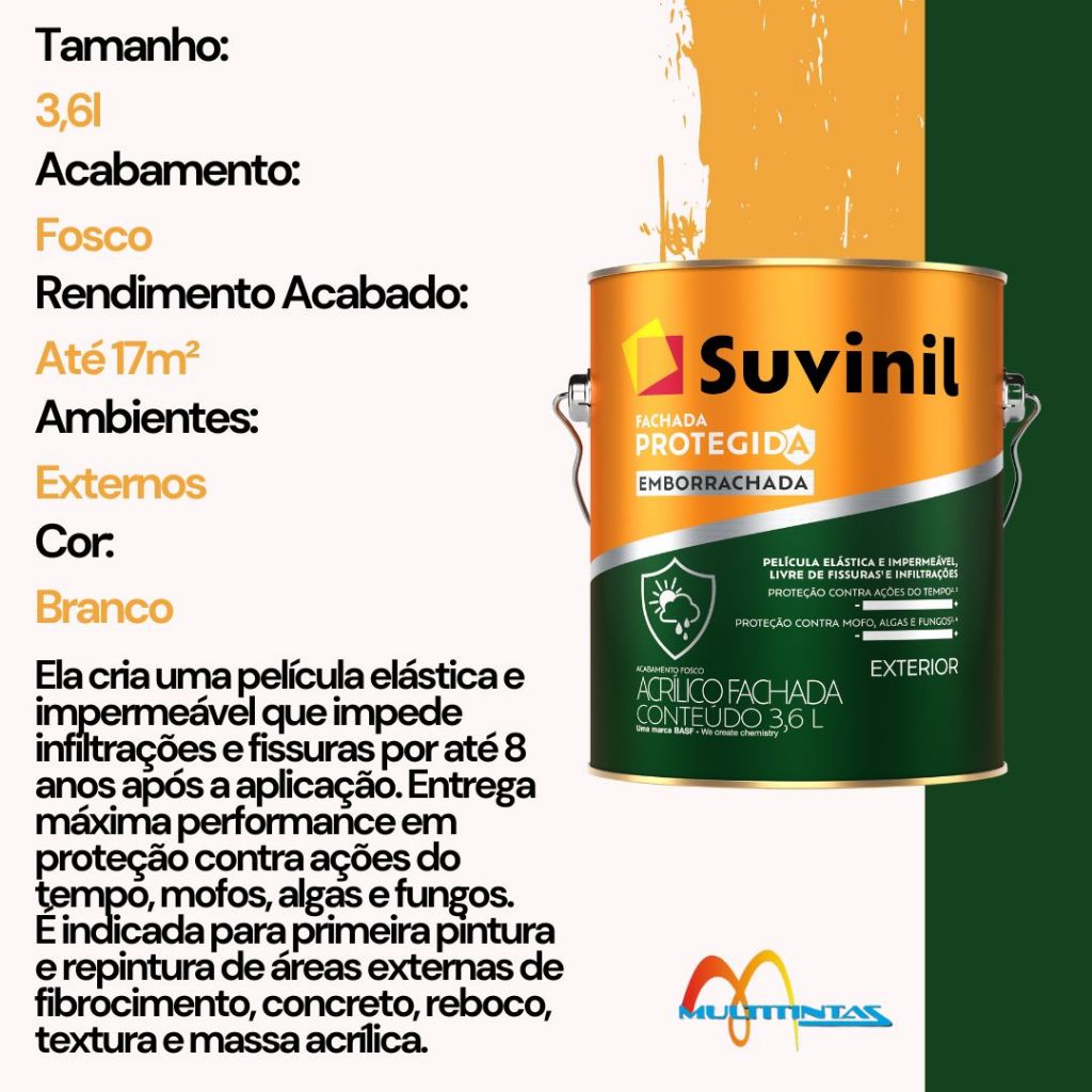 Tinta Acrílica Emborrachada Fachada Protegida 3,6L Acabamento Fosco Cor Branco Suvinil