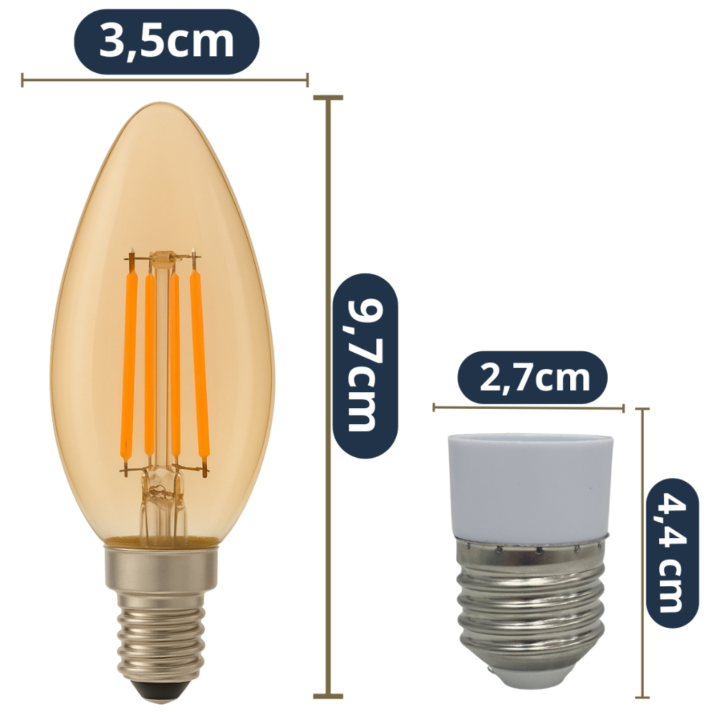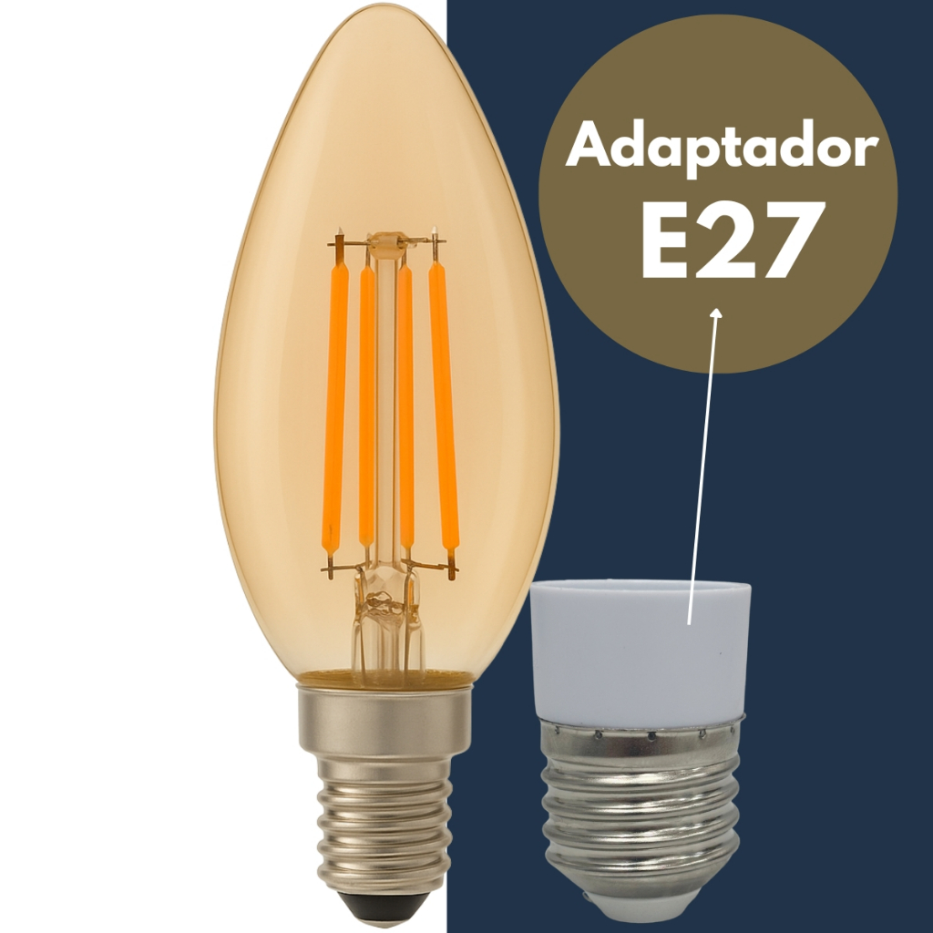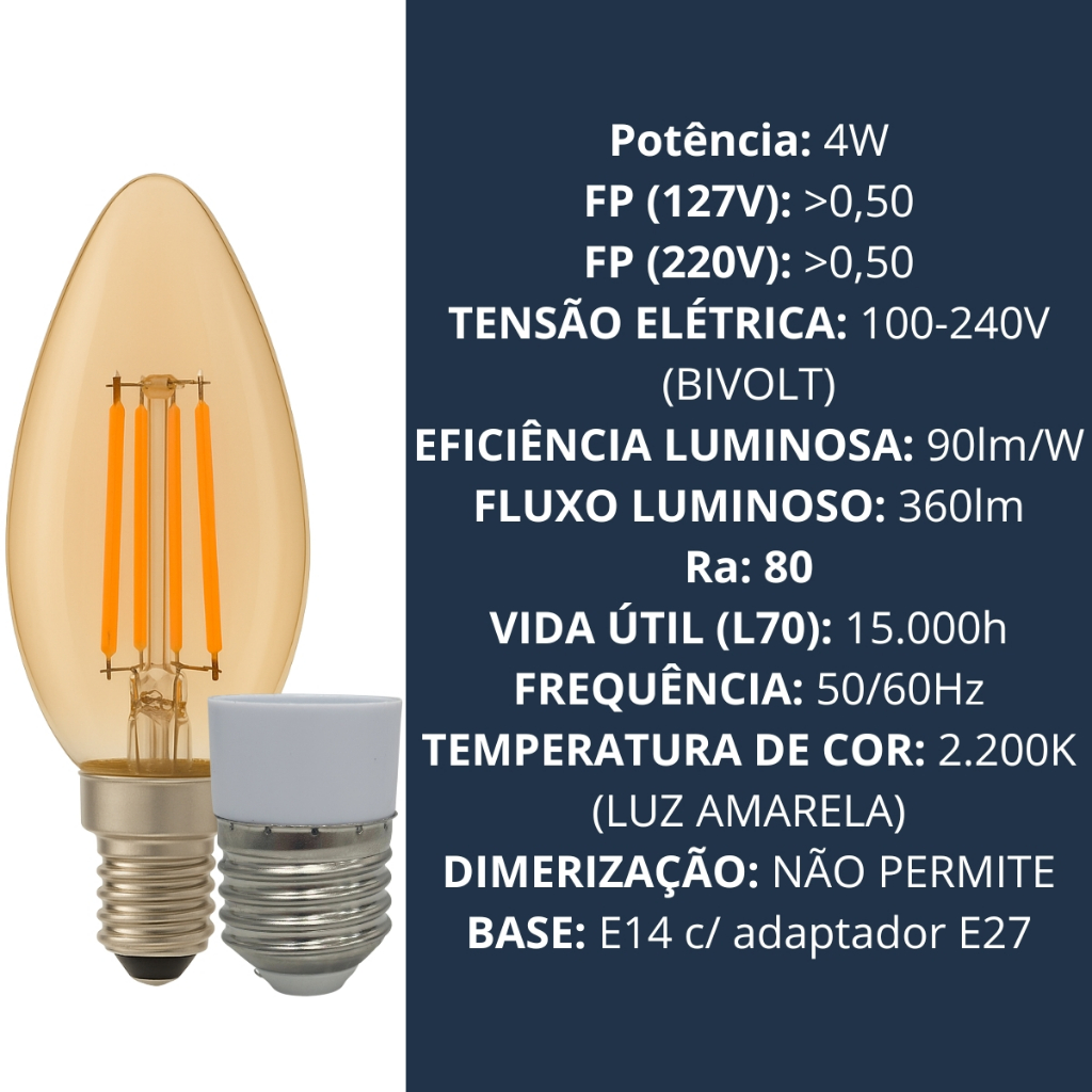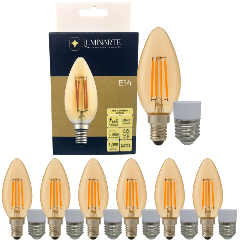 Kit 6 Lâmpadas Vela C35 LED 4W Bivolt Filamento Âmbar 2200K Luz Amarela LUMINARTE