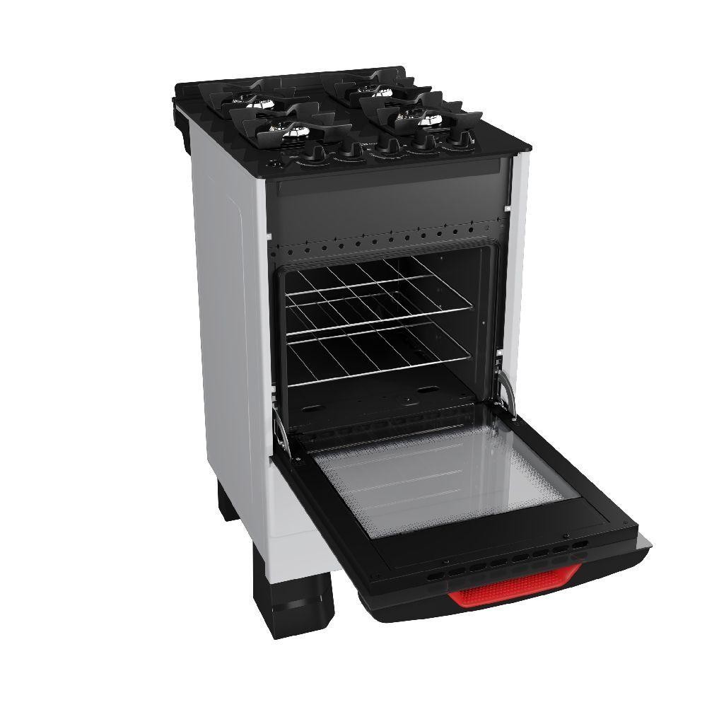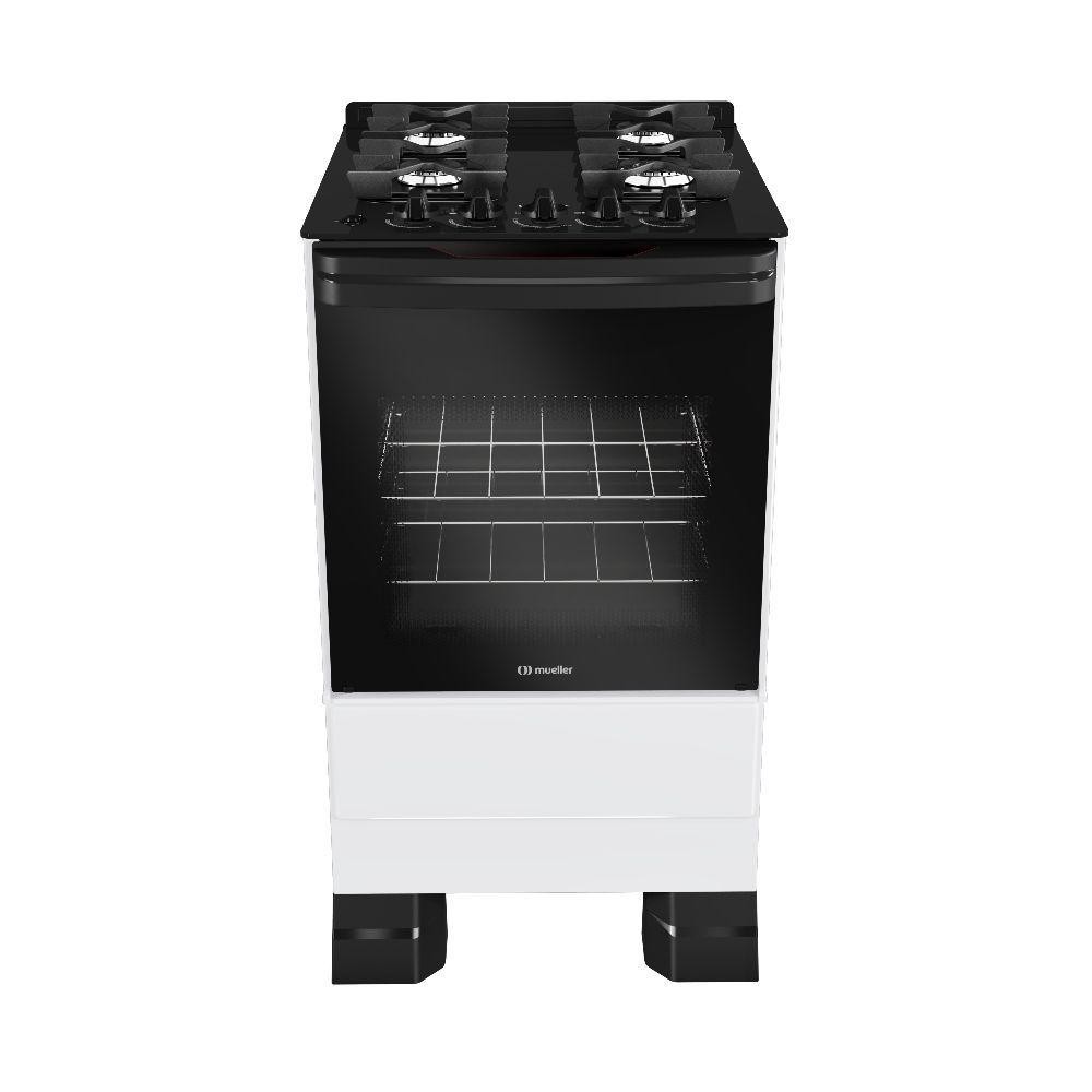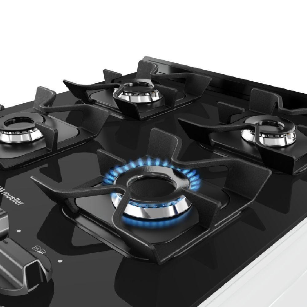 Fogão Mueller 4 Bocas Branco Bivolt Mesa De Vidro Grades Ferro Fundido MFV4BF