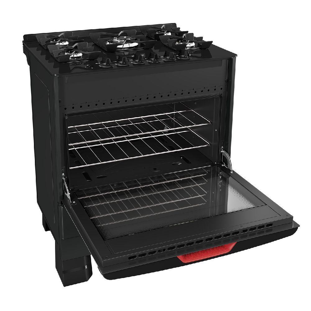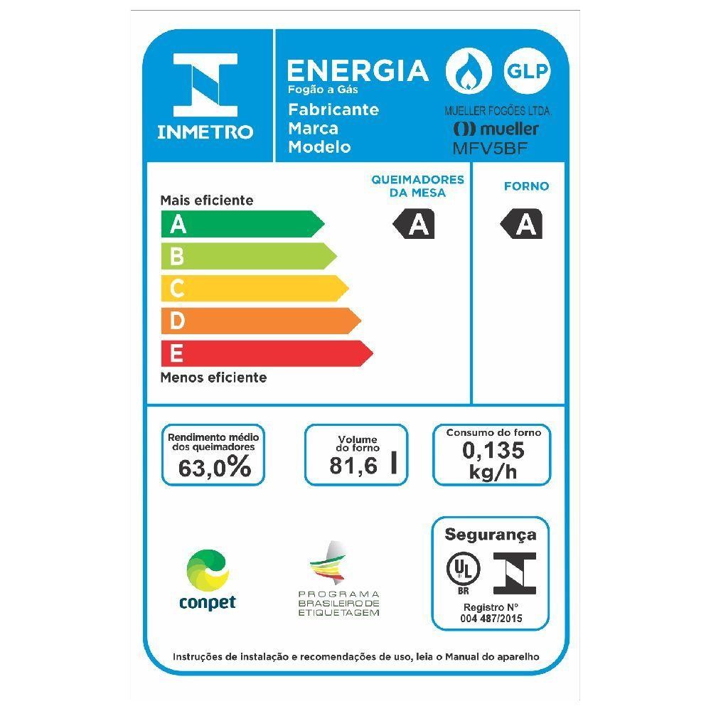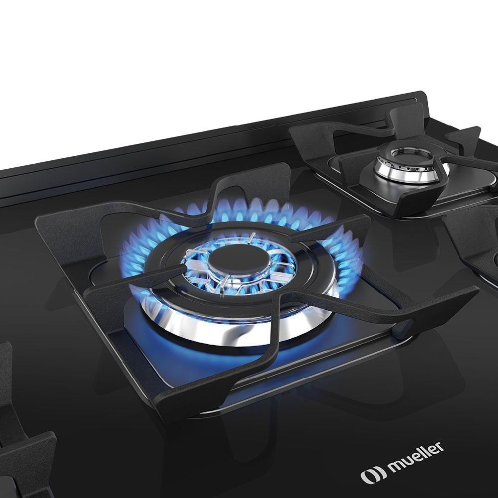 Fogão Mueller 5 Bocas Preto Bivolt Mesa de Vidro e Tripla Chama MFV5BF