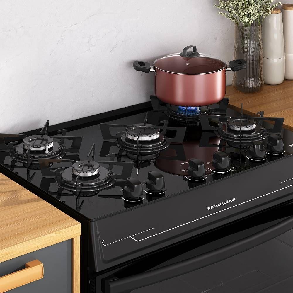 Fogão Itatiaia Electra Glass Plus Piso 5 Bocas Preto Mesa de Vidro - Bivolt (3700000486)