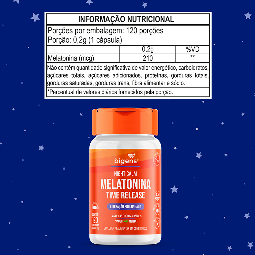 BIGENS NIGHT CALM TIME RELEASE (LIBERAÇÃO PROLONGADA) 120 PASTILHAS SABOR MENTA