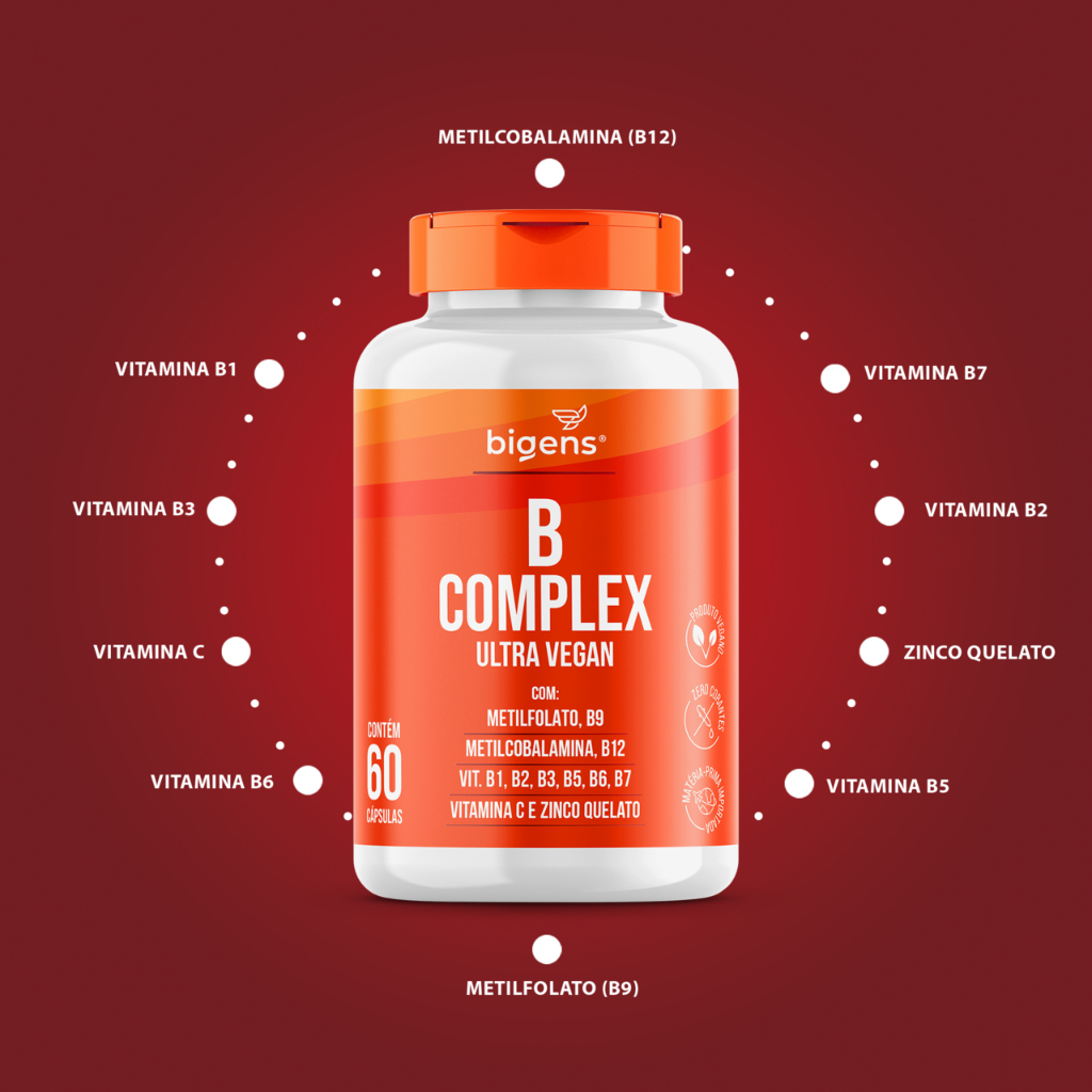 Complexo B Vegano, Apenas 1 Cápsula Ao Dia, Total 60 Cápsulas, Até 500% Idr, Bigens