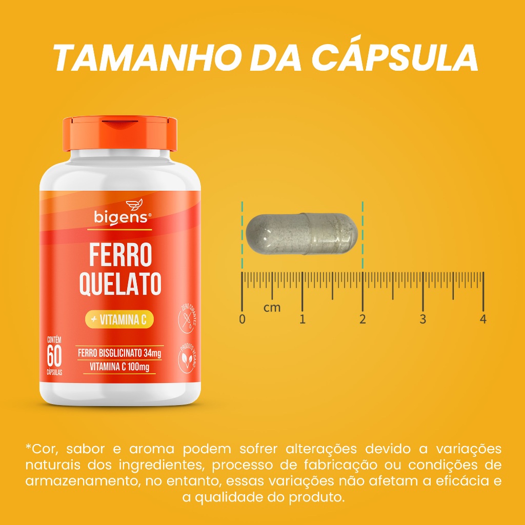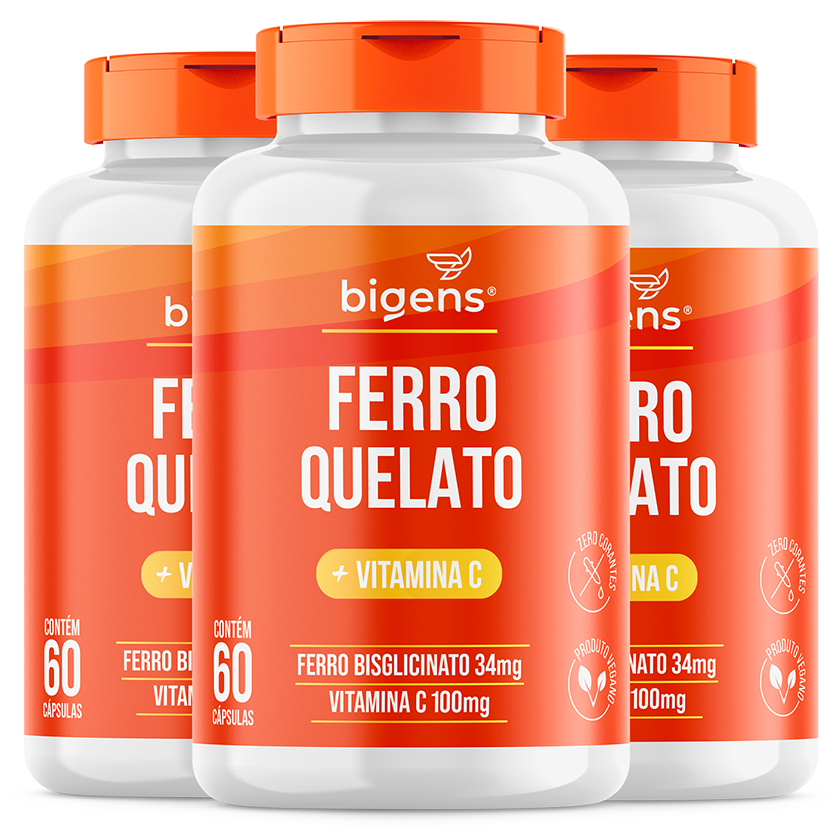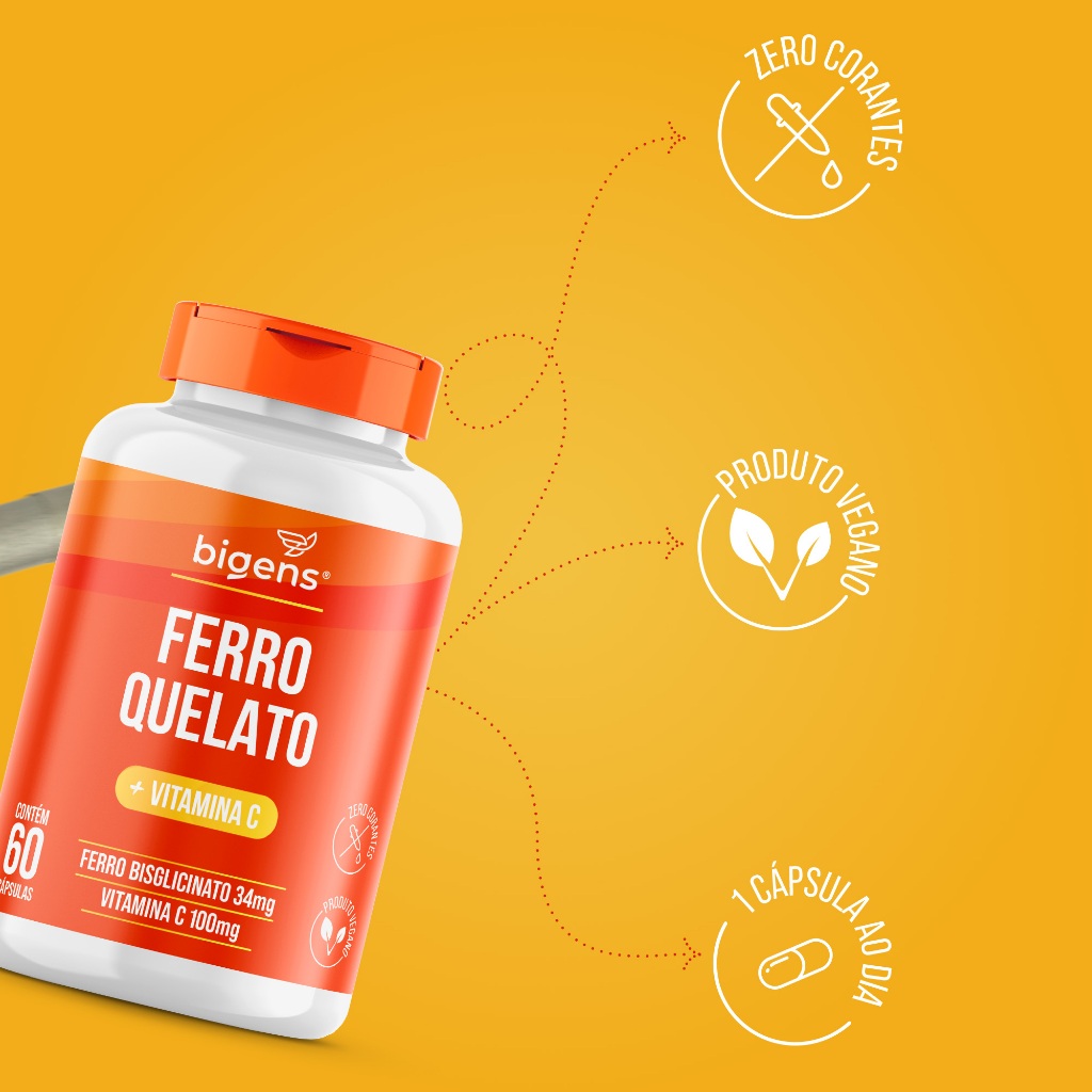 Ferro Quelato 34mg + Vitamina C 100mg ( Por Cápsula ) | 60 Cápsulas | Vegano | Bigens