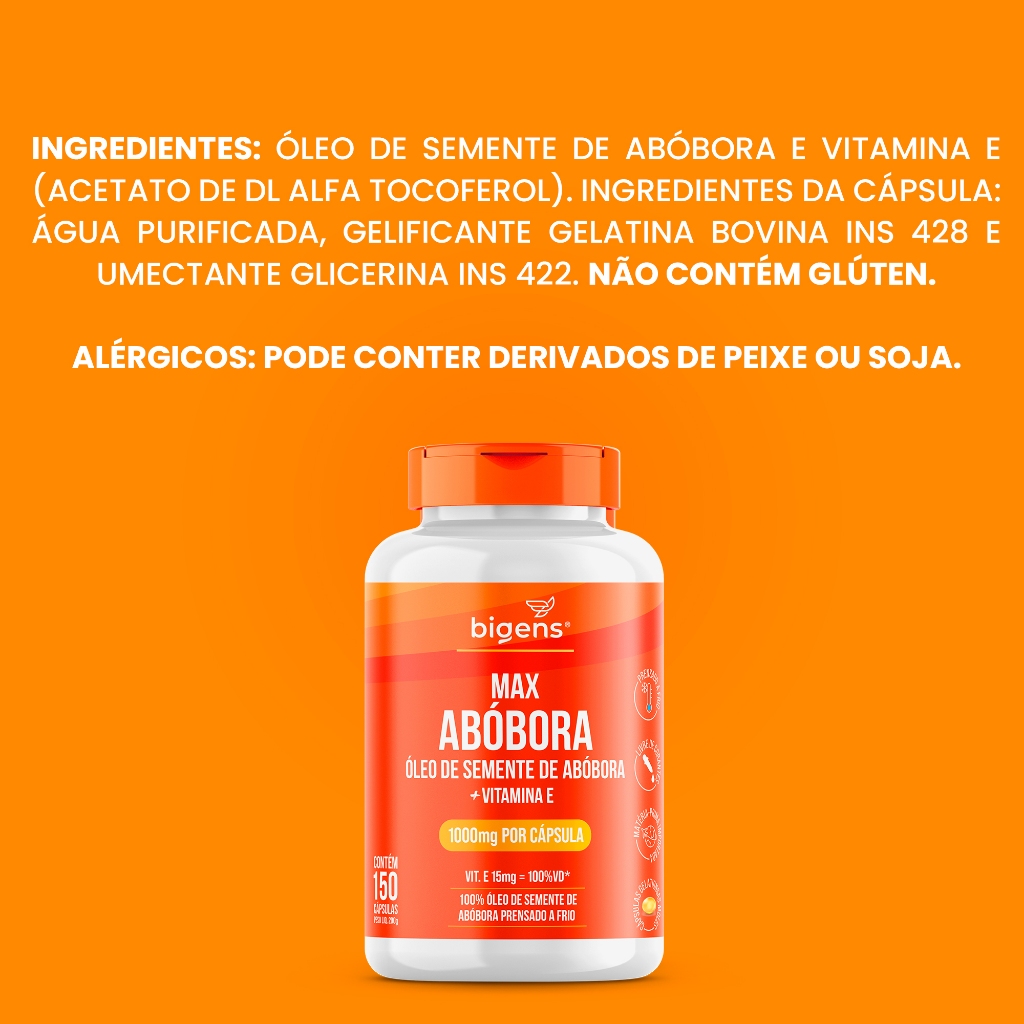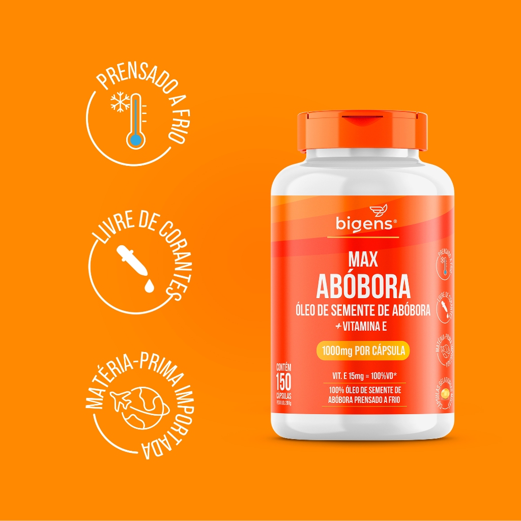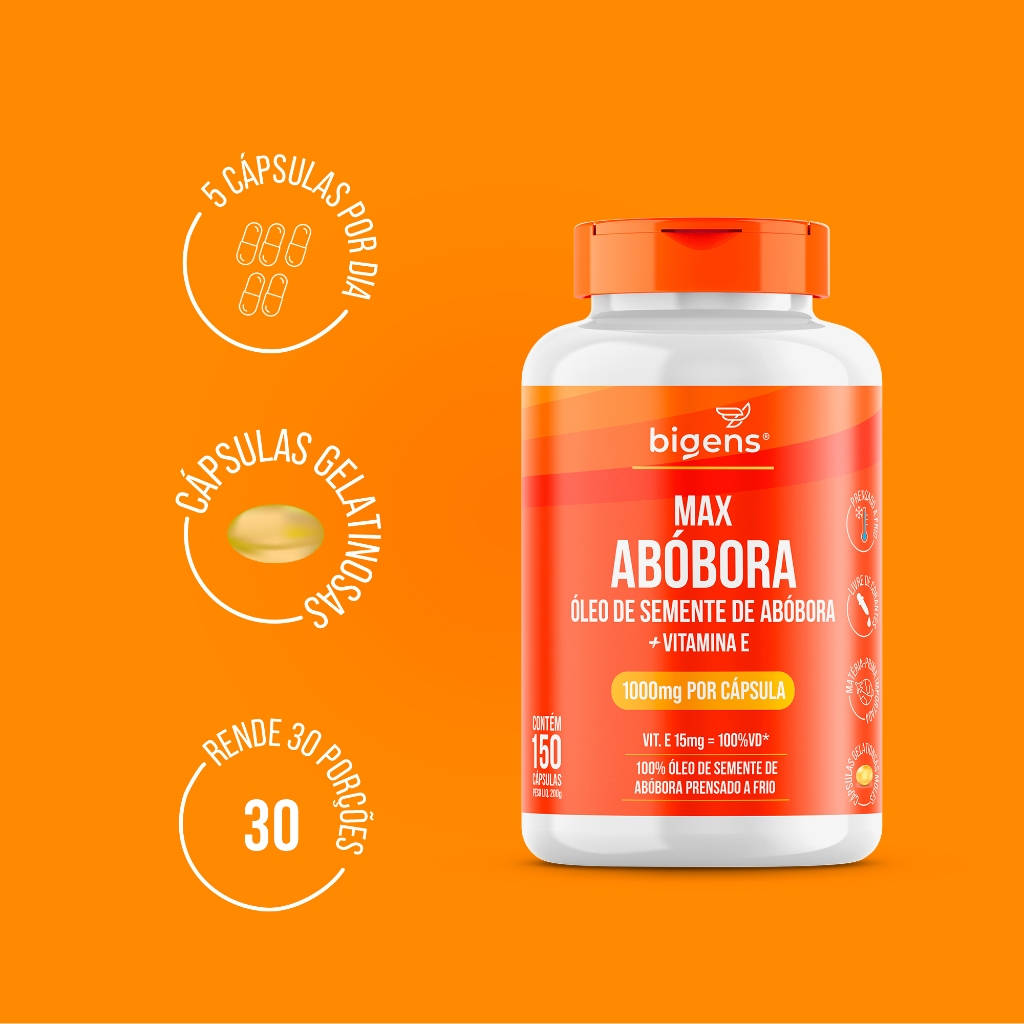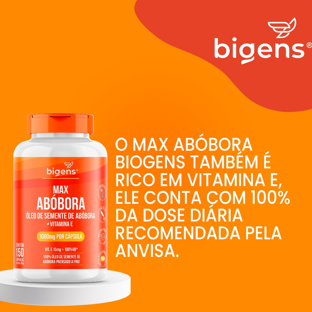 Max Abóbora, Óleo de Semente de Abóbora c Vitamina E, 1000mg, Prensado a Frio, Biogens, 150 cápsulas