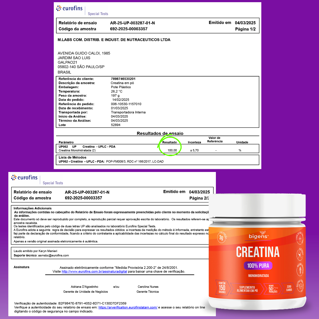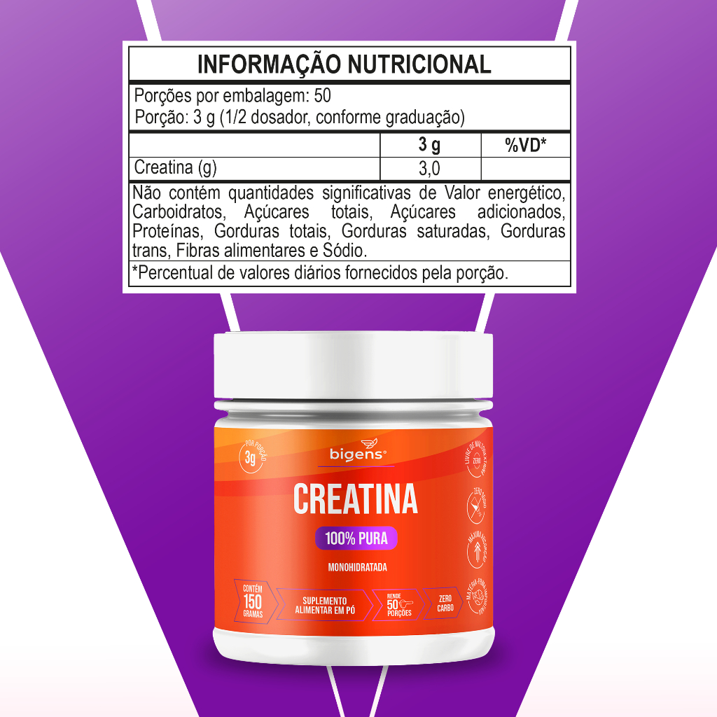 Creatina Monohidratada Bigens 150g 100% Pura Zero Carbo Eurofins