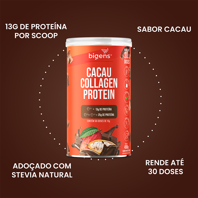 BIGENS CACAU COLLAGEN PROTEIN 450G | 25G DE PROTEÍNA POR PORÇÃO