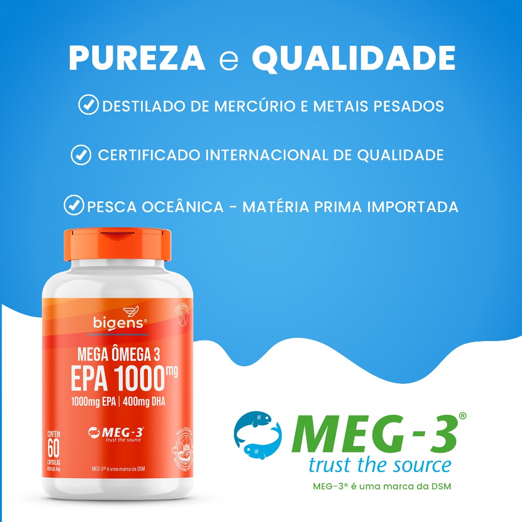BIGENS MEGA ÔMEGA 3 EPA 1000MG, DHA 400MG MEG-3 (SEM VITAMINA E NA FÓRMULA) 60 CAPS