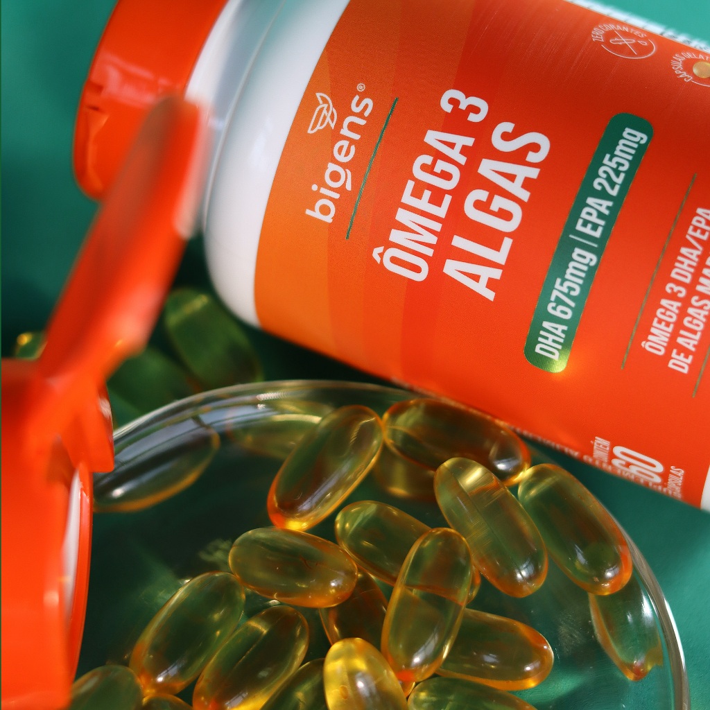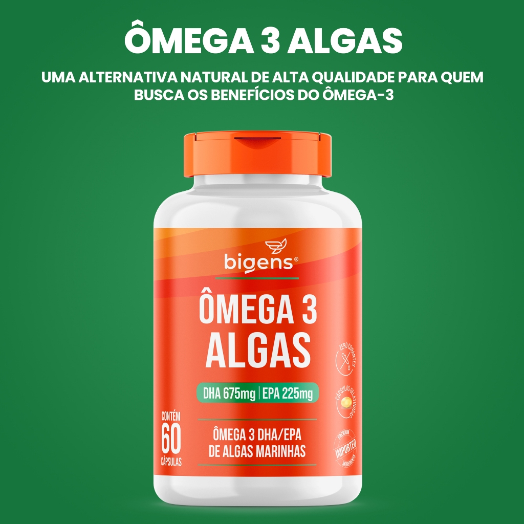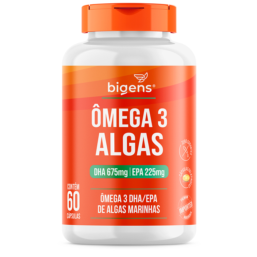 Ômega 3 Algas 🌱 | DHA 675mg + EPA 225mg | Origem Sustentável de Algas Marinhas | 60 Cáps | Bigens
