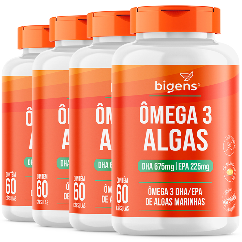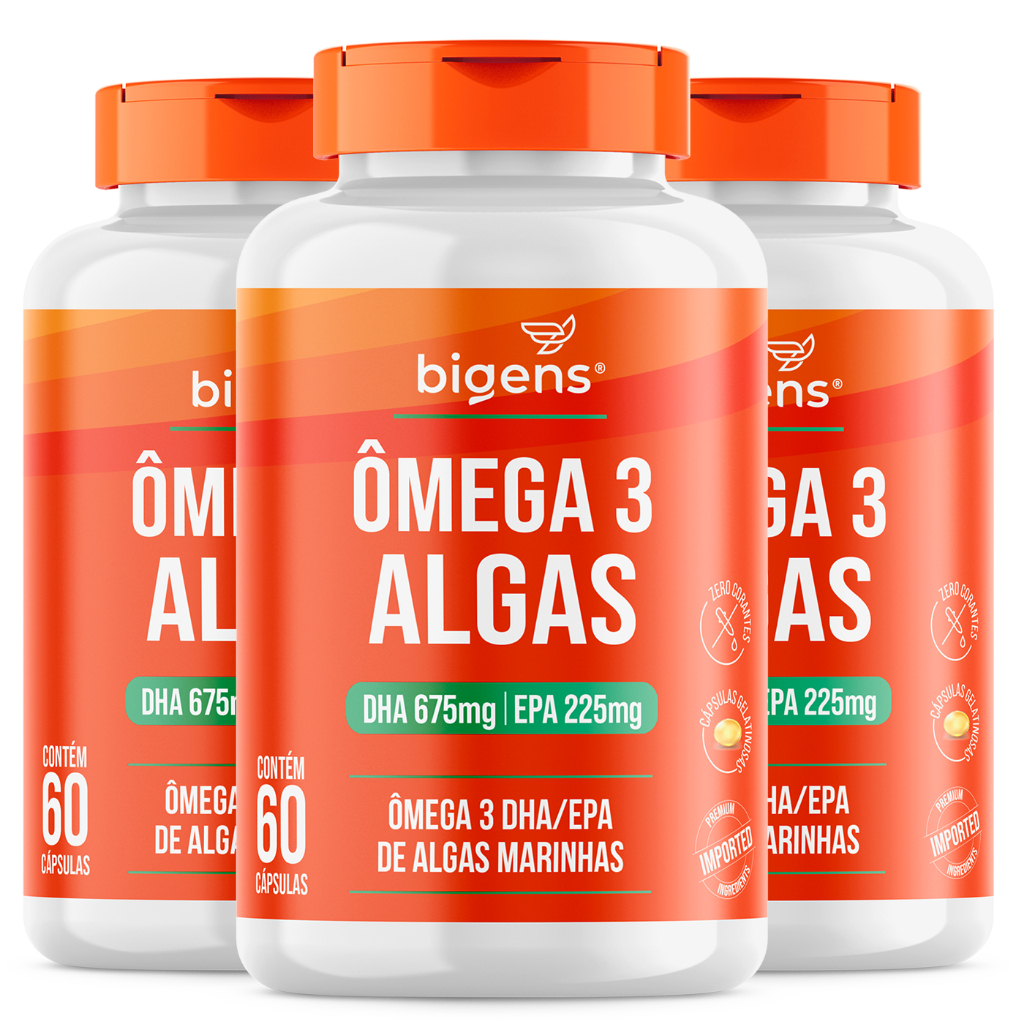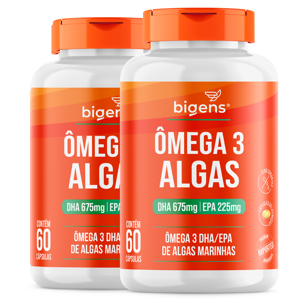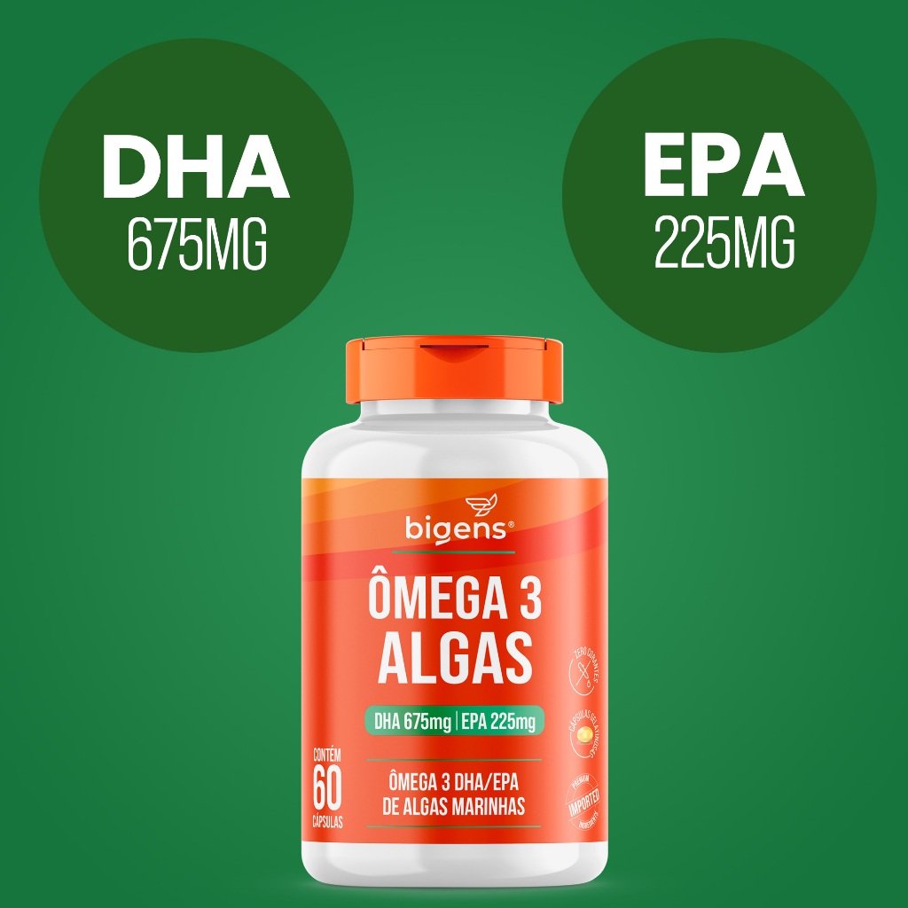Ômega 3 Algas 🌱 | DHA 675mg + EPA 225mg | Origem Sustentável de Algas Marinhas | 60 Cáps | Bigens