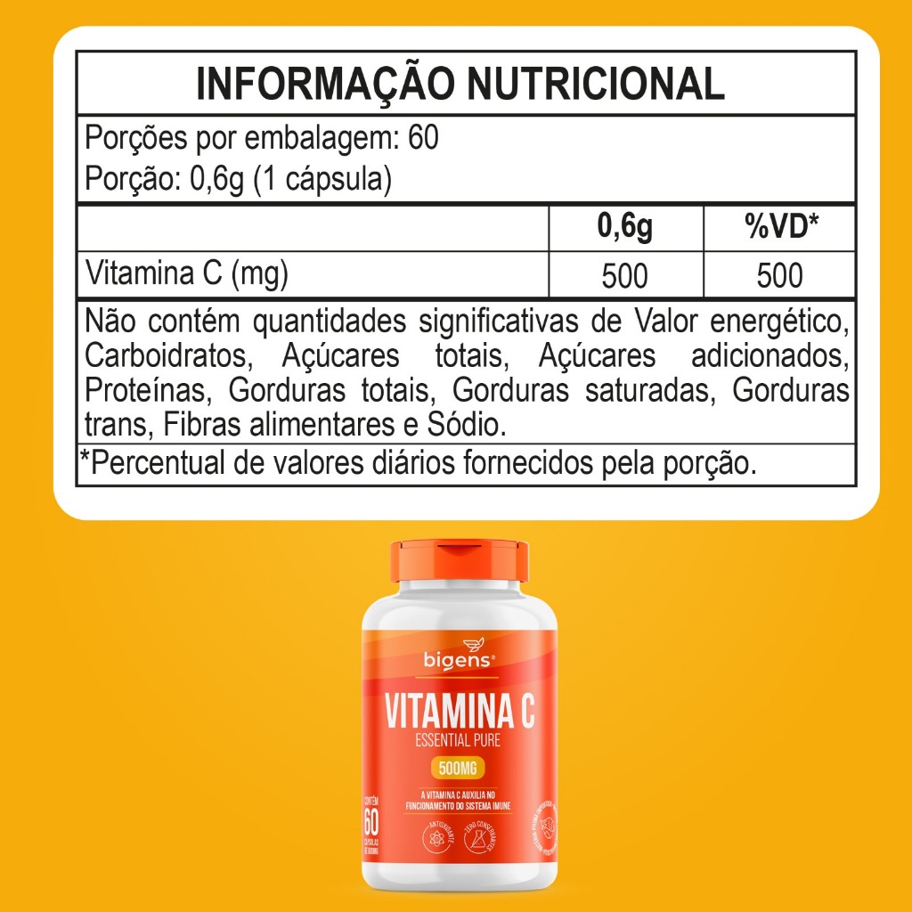 BIGENS KIT 3X VITAMINA C ESSENTIAL PURE, 500MG, 60 CÁPSULAS BIOGENS