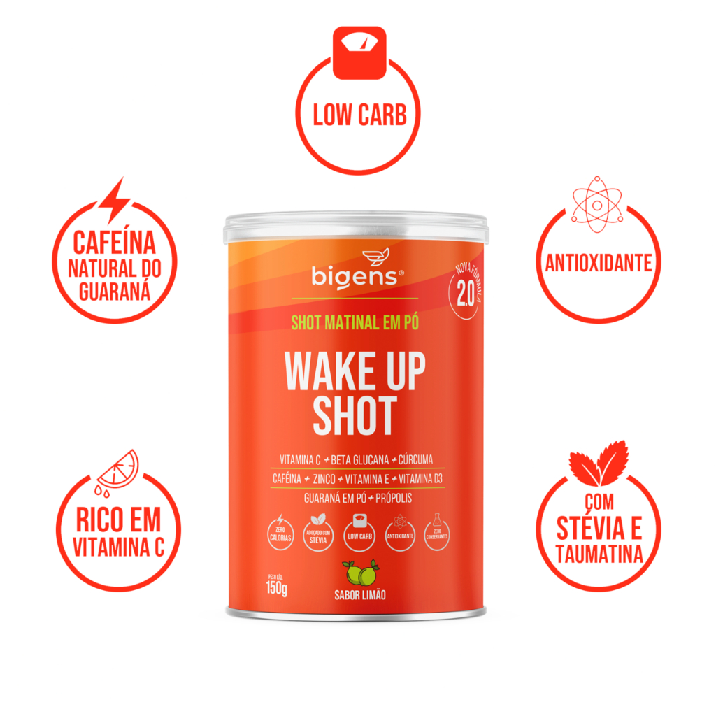 Wake up shot, vitamina c, própolis, gengibre, cúrcuma, guarana e zinco, 150g, Bigens (Unidade)