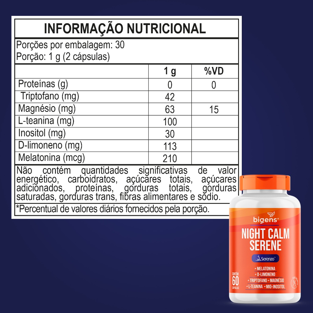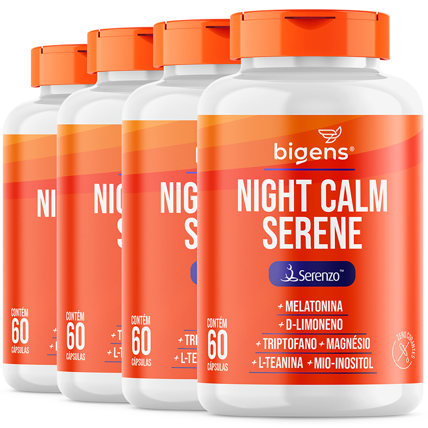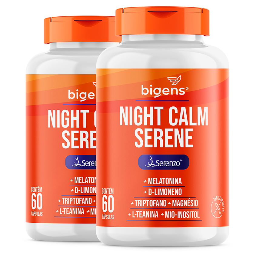Night Calm Serene 🌙 com ( Serenzo ™ ) Triptofano, Magnésio, Teanina, Inositol | 60 Cáps | Bigens
