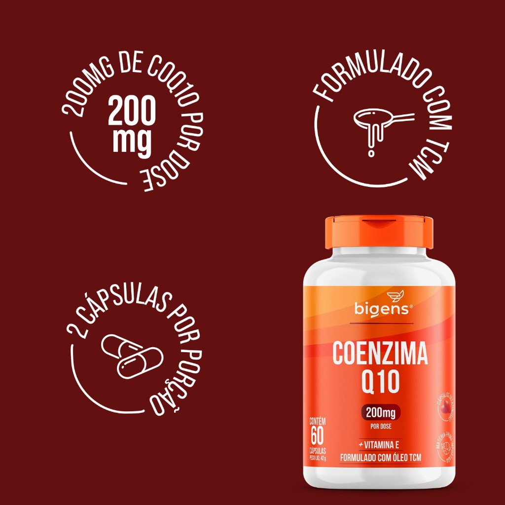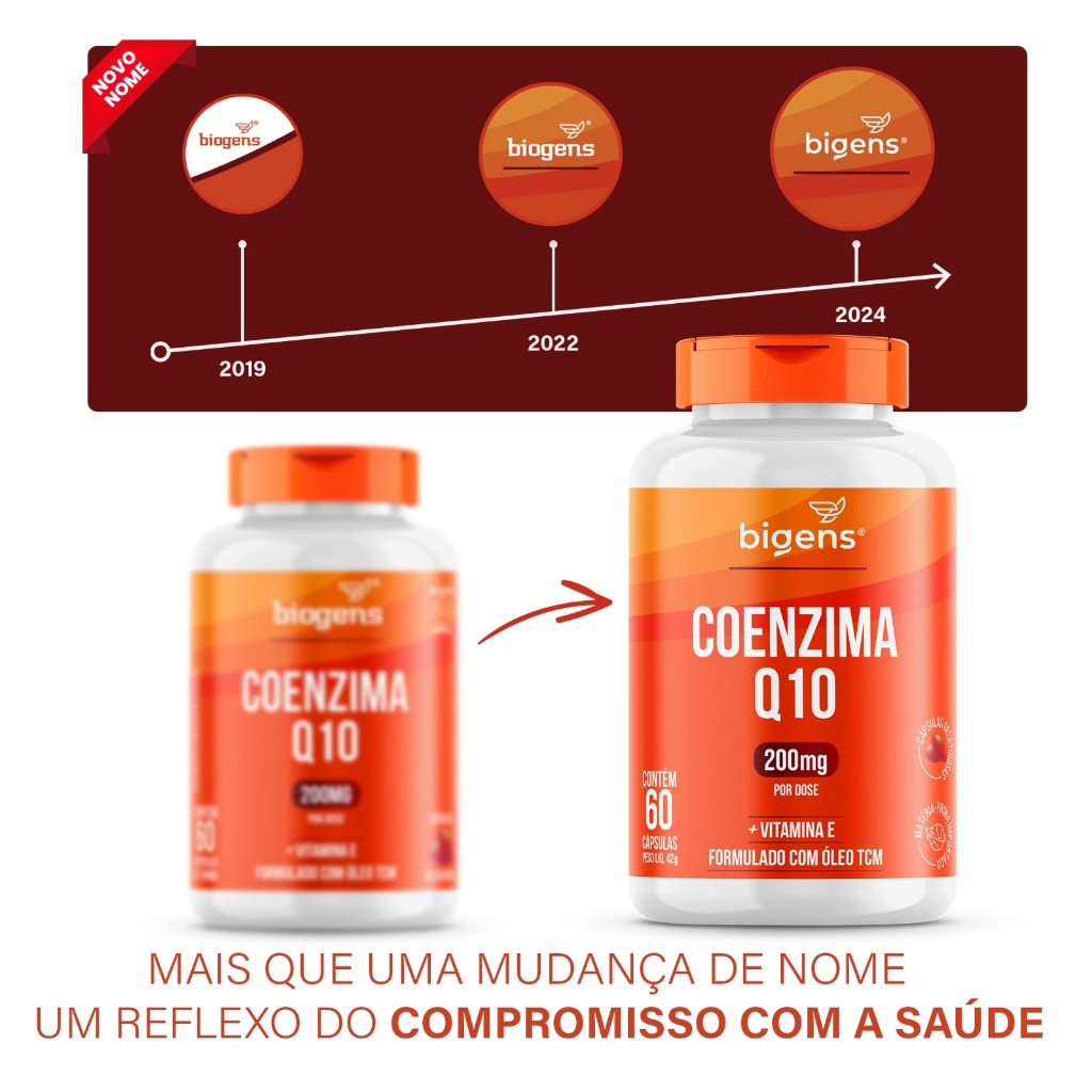 Coenzima Q10 200mg com vitamina E 10mg, alta concentração, 60 cápsulas, Bigens (Unidade)
