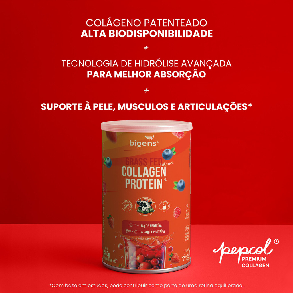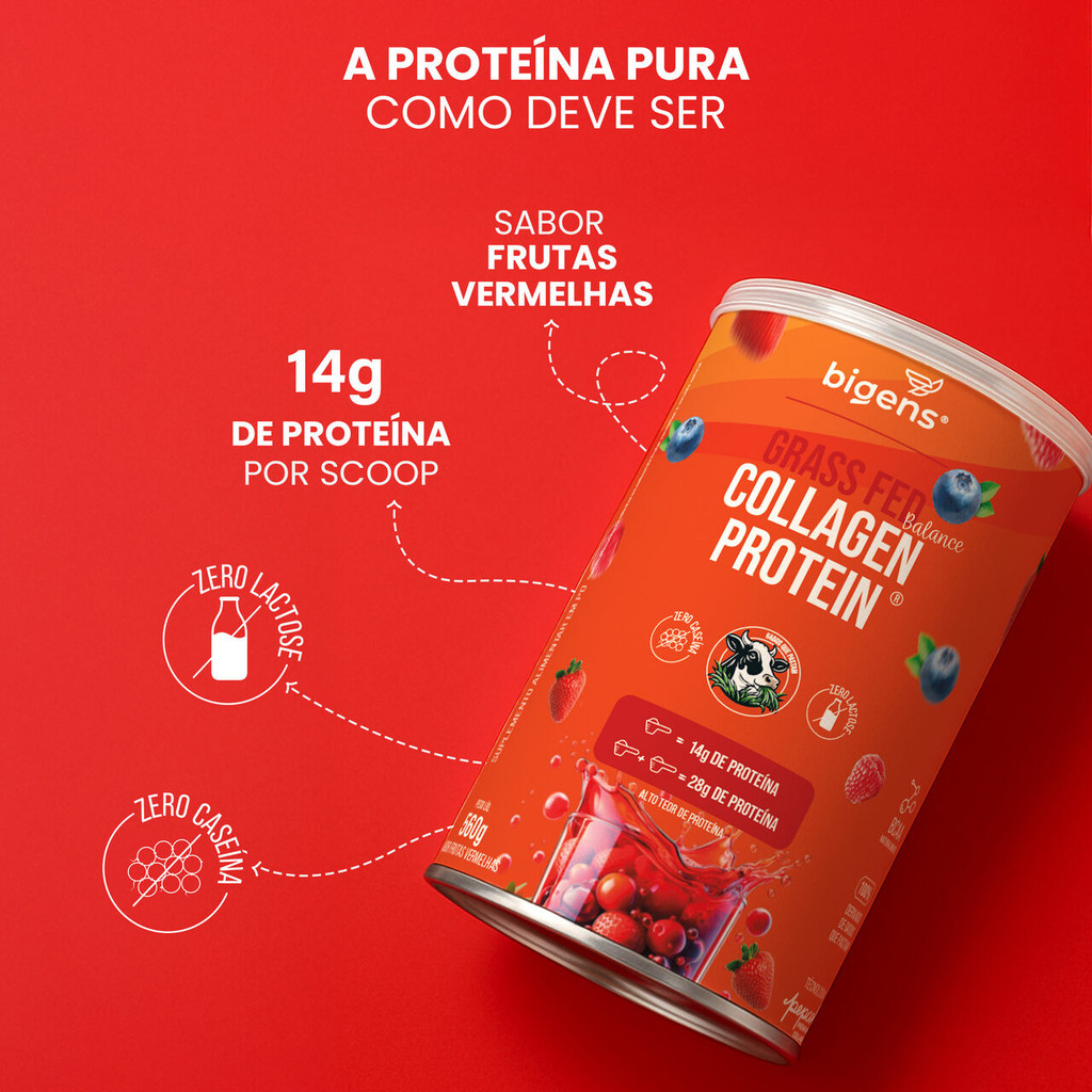 Grass Fed Balance Collagen Protein® 28g Proteína | Colágeno Pepcol® | Frutas Vermelhas | 560g Bigens