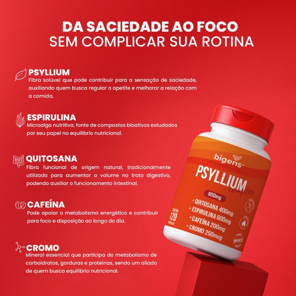 Kit Bigens NAC 600mg 30 Caps + Psyllium Complex 120 Caps | Fibras, Psyllium, Quitosana, Espirulina e Cromo