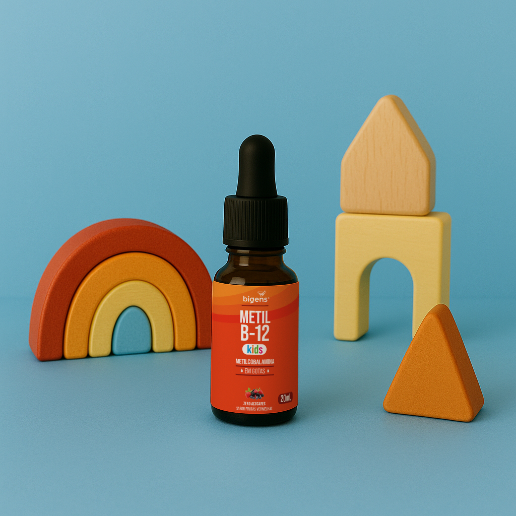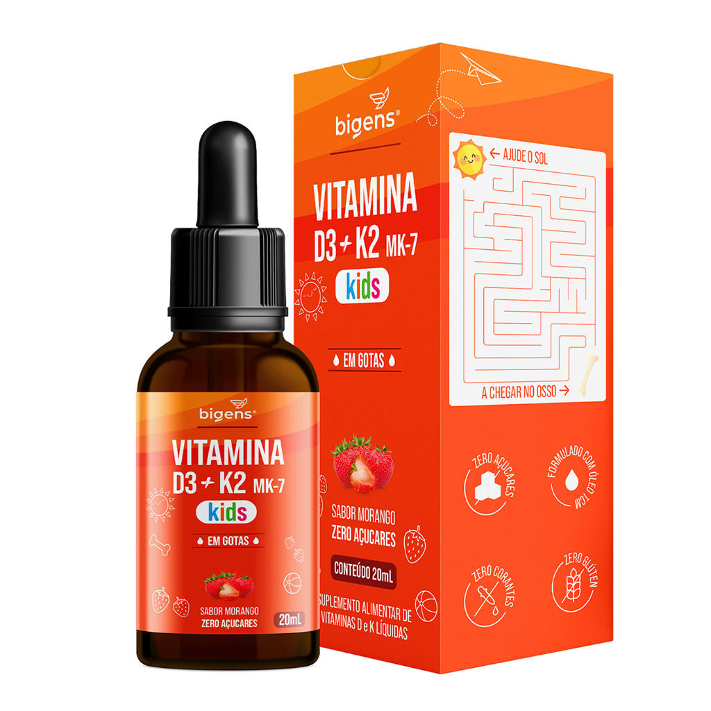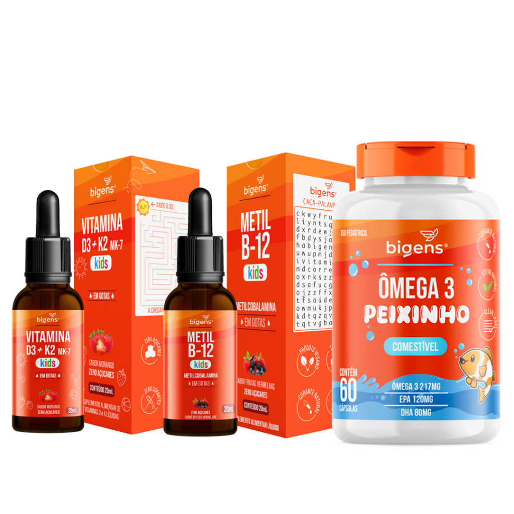 Kit Vitaminas Kids Bigens D3 + K2 MK7 Morango + Metil B12 Frutas Vermelhas + Ômega 3 Peixinho Infantil