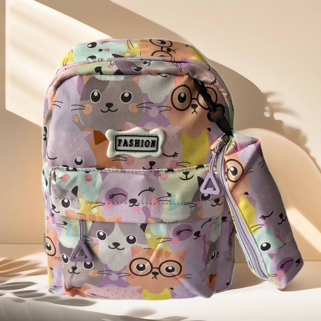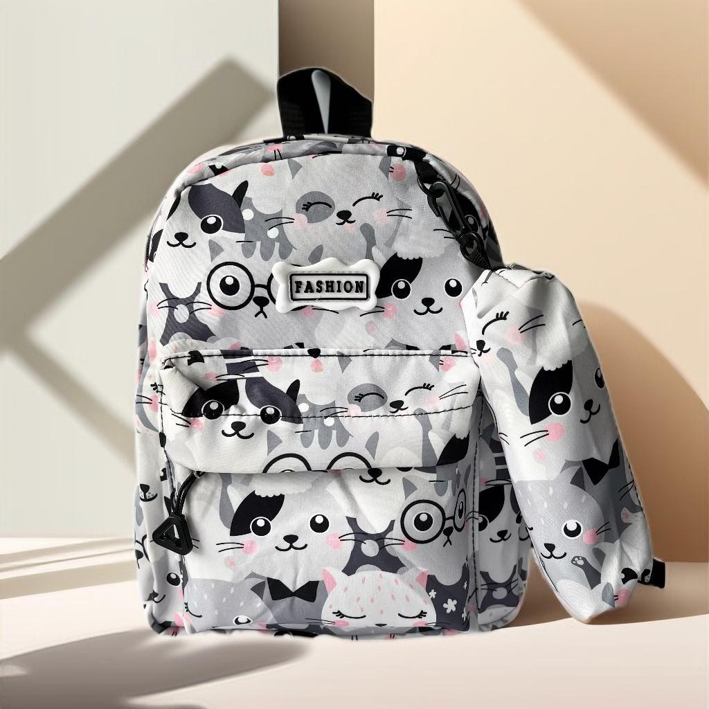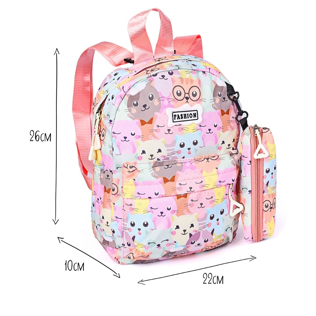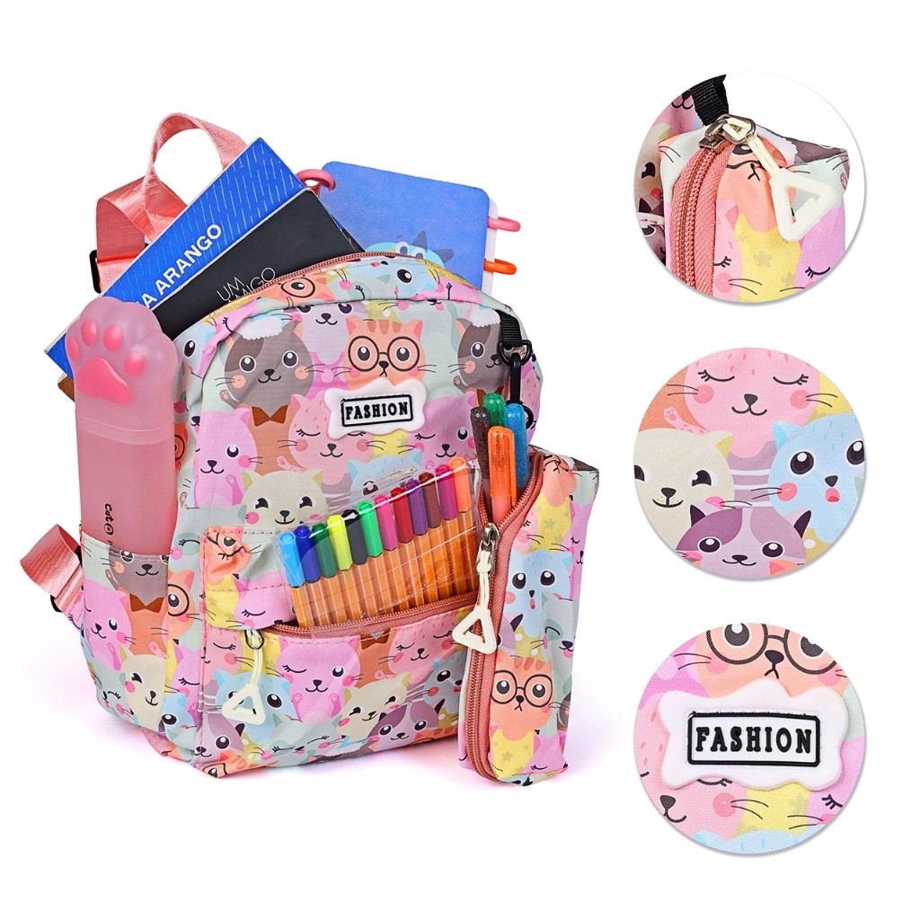 Kit Mochila e Estojo Infantil Feminina Estampa de Gatinho ou Ursinho Confortável e Resistente