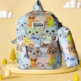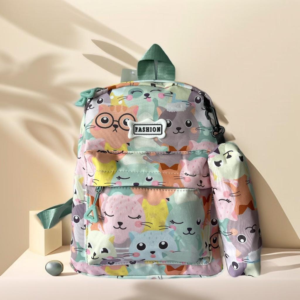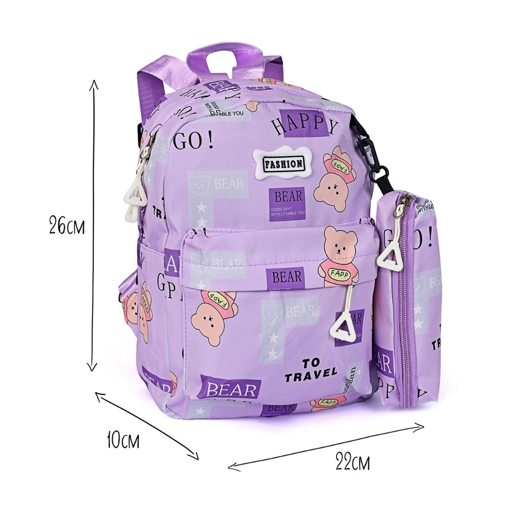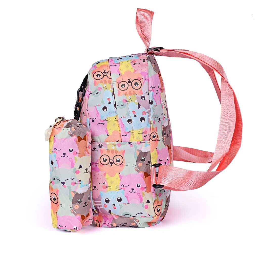 Kit Mochila e Estojo Infantil Feminina Estampa de Gatinho ou Ursinho Confortável e Resistente