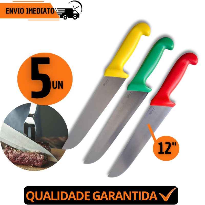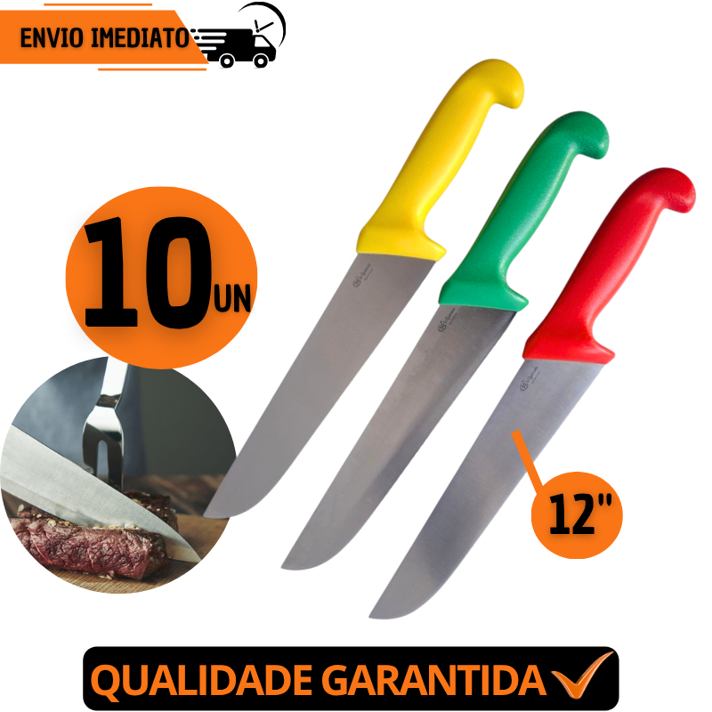 Jogo 10 Faca Profissional 12"Aço Inox Açougue Chef Desossar Corte Afiado Premium Churrasco