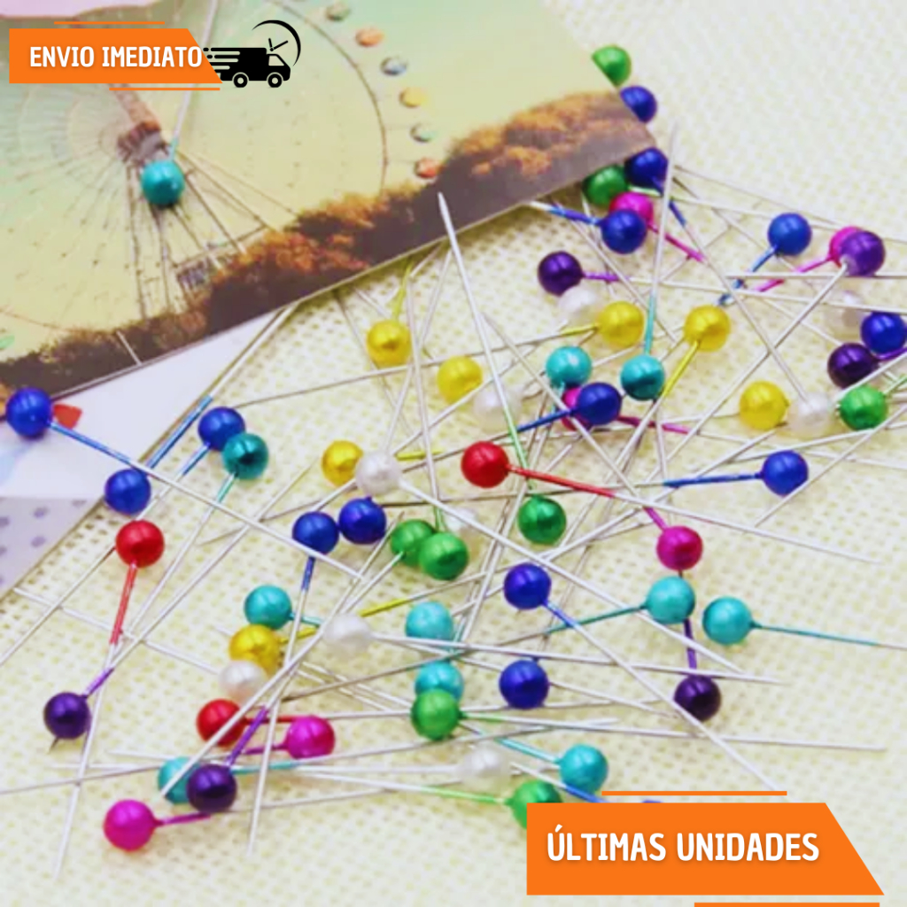 Kit 600 Alfinetes Coloridos Cabeça Bola Costura Patchwork Artesanato Linha Premium Ateliê