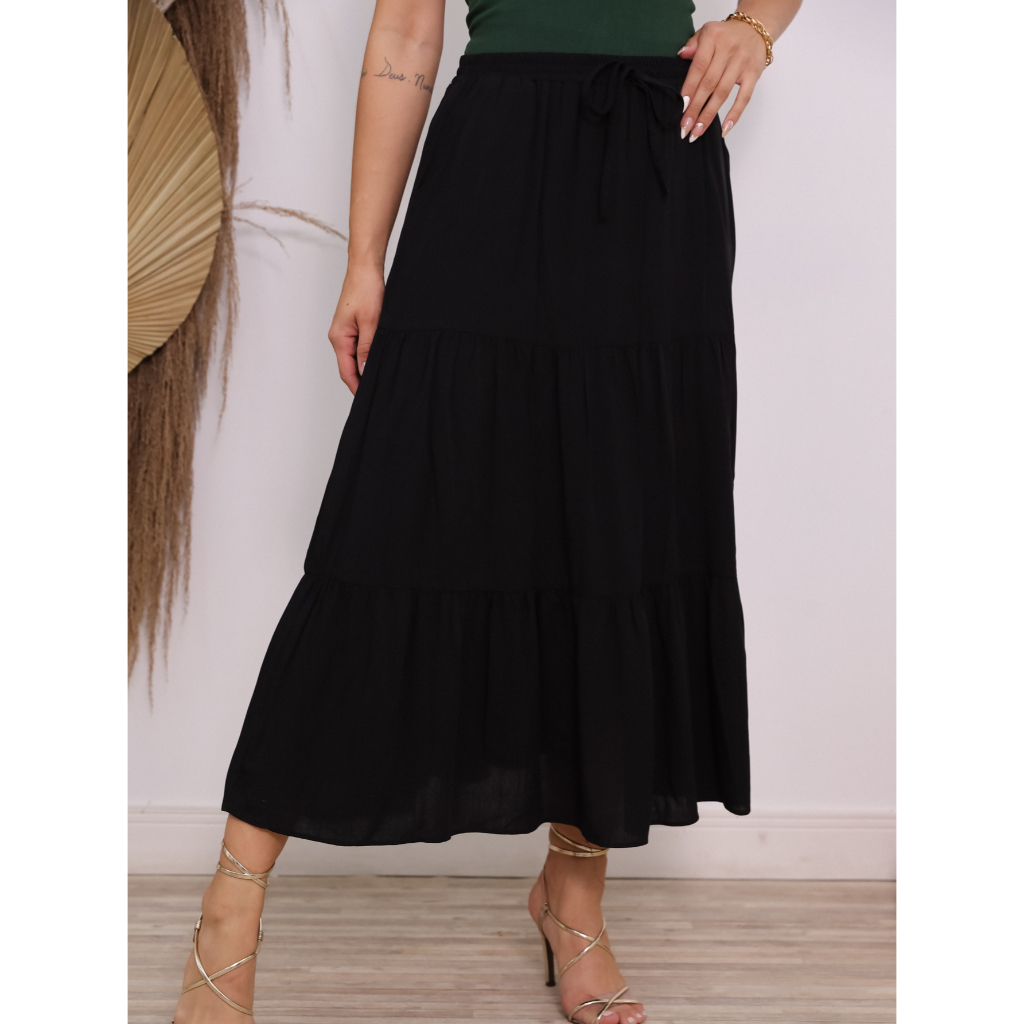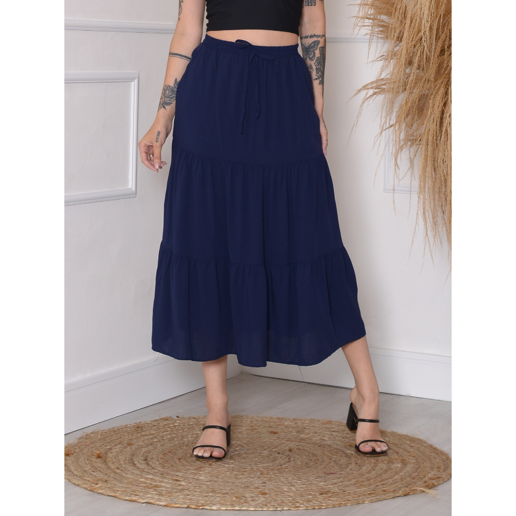Maria W Modas Saia Bolo Liso Babado/Com Forro /Com Bolso /Viscolinho/verao novo 2023