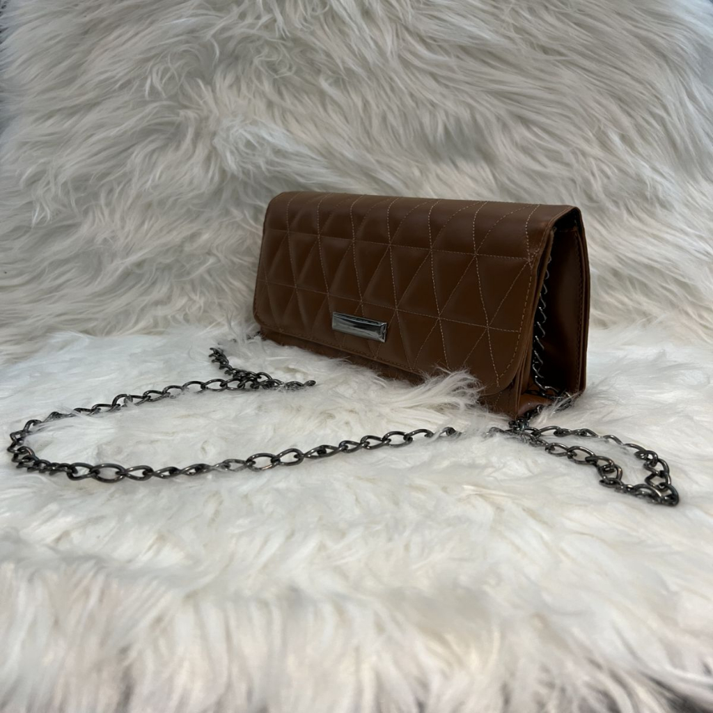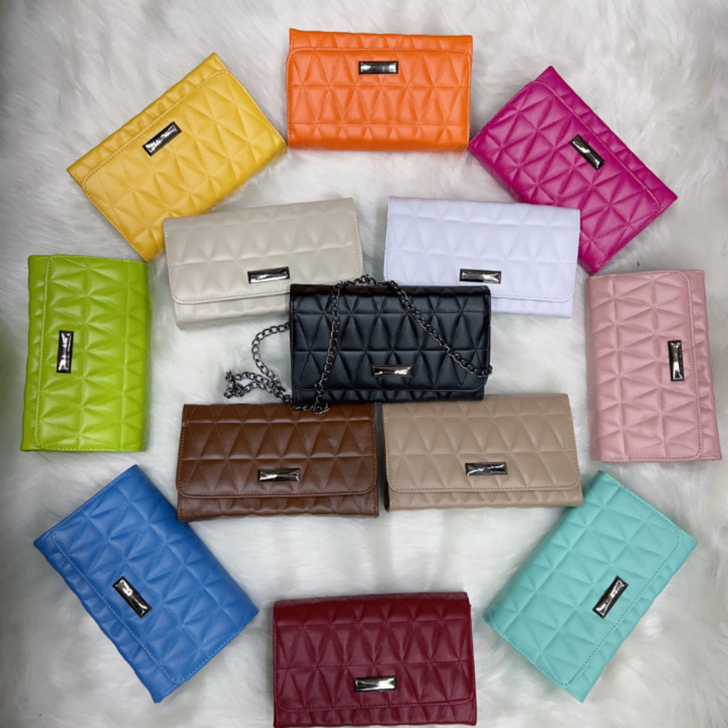 Bolsa Bordada Triangulo Tiracolo Com Corrente