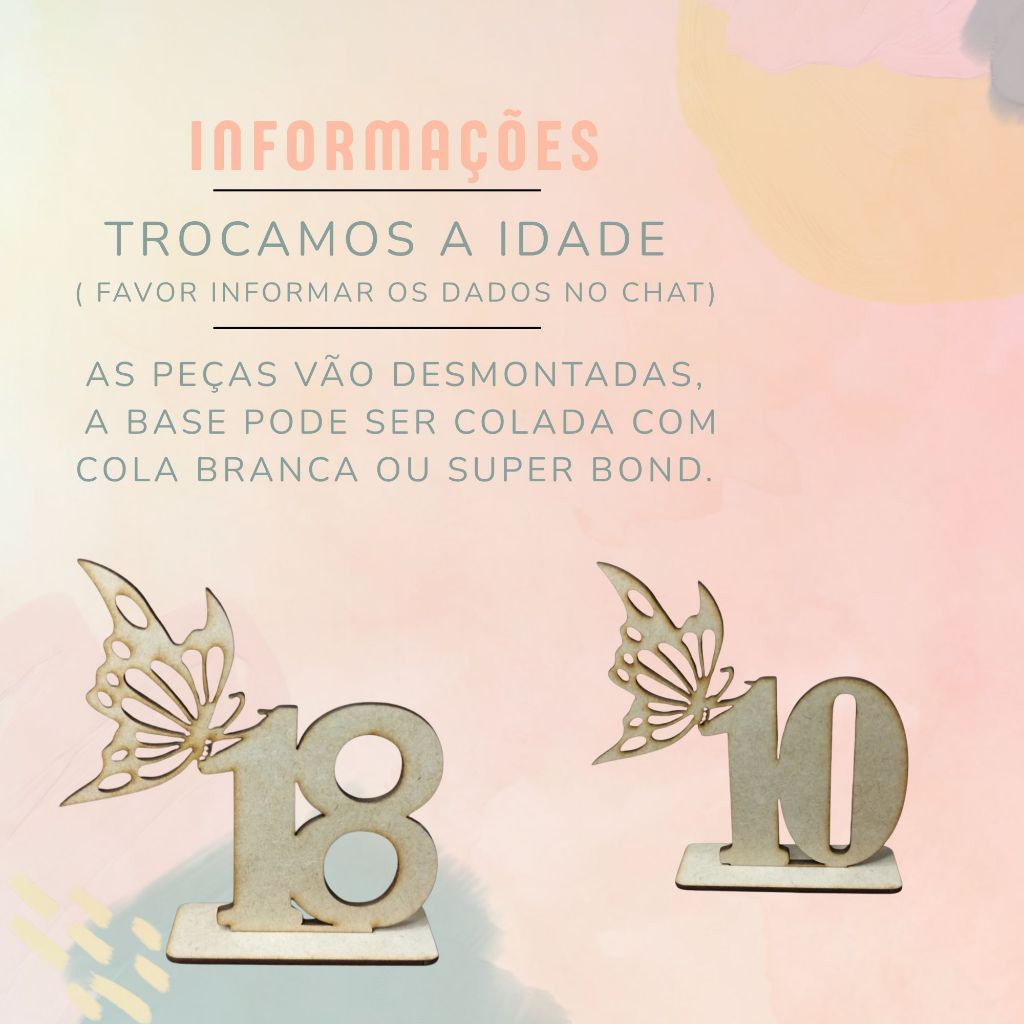 Kit Centro De Mesa Lembrancinha Festa Aniversário Borboleta personalizada Com Idade MDF Cru
