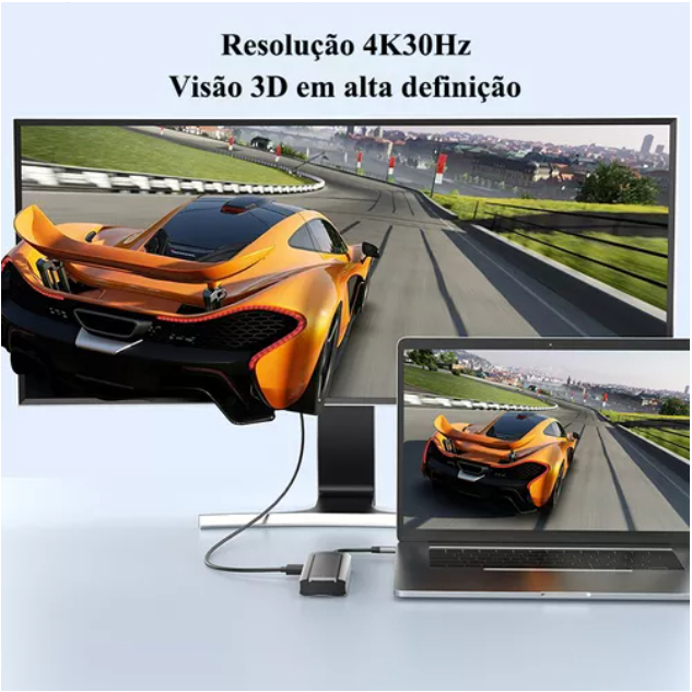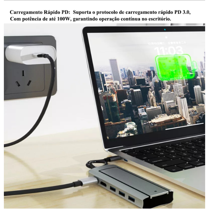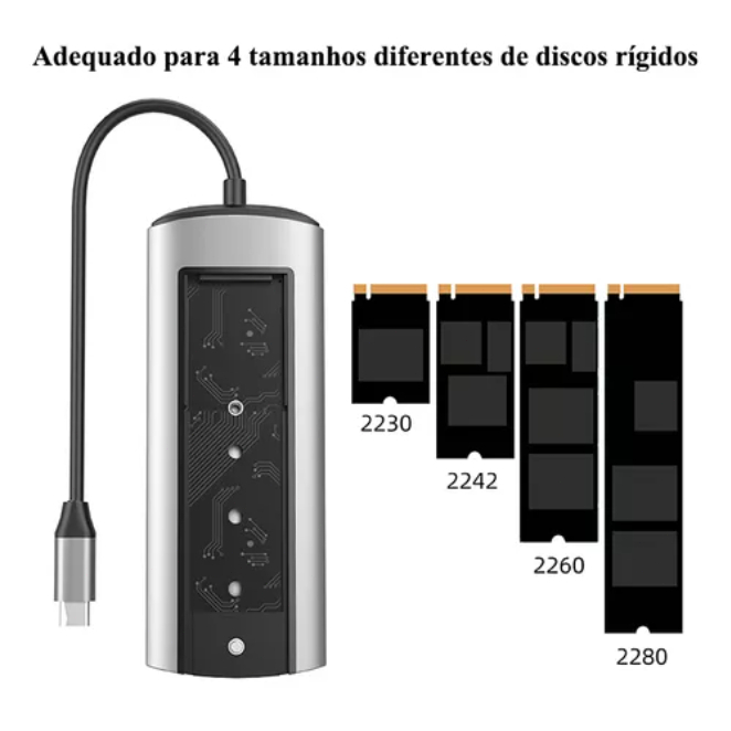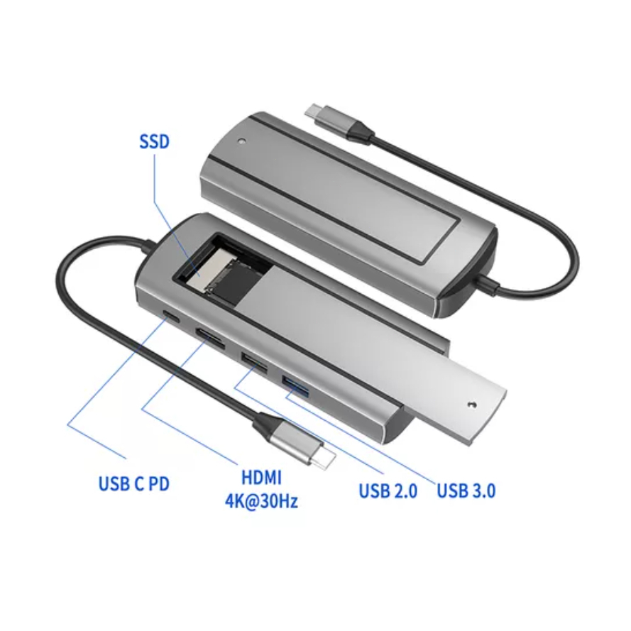 Dock USB-C 6 em 1 com Case para SSD M.2, Hub USB 3.0, HDMI 4K e Leitor de Cartões - Compatível com MacBook, Notebook ePC
