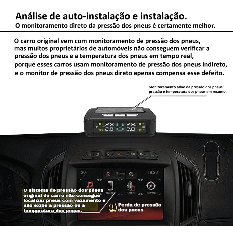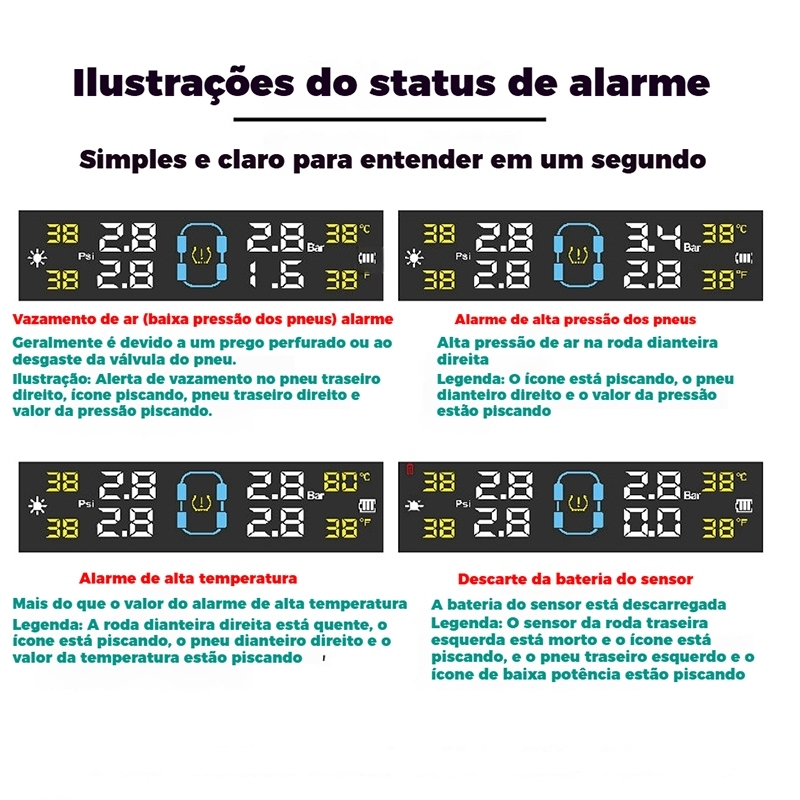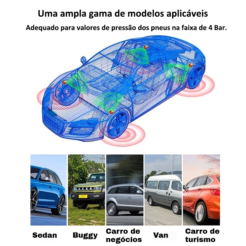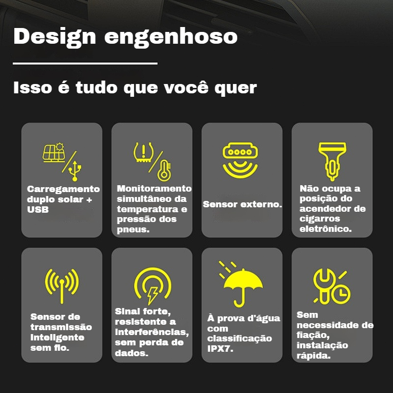 Sensor TPMS 4 Rodas Universal - Instalação Fácil sem Remover Pneus + Monitoramento em Tempo Real