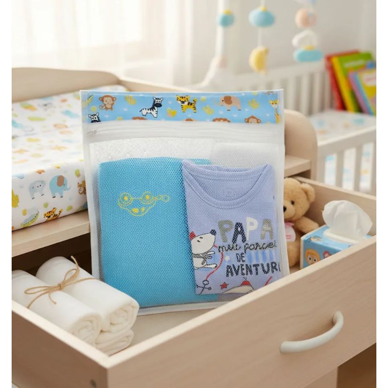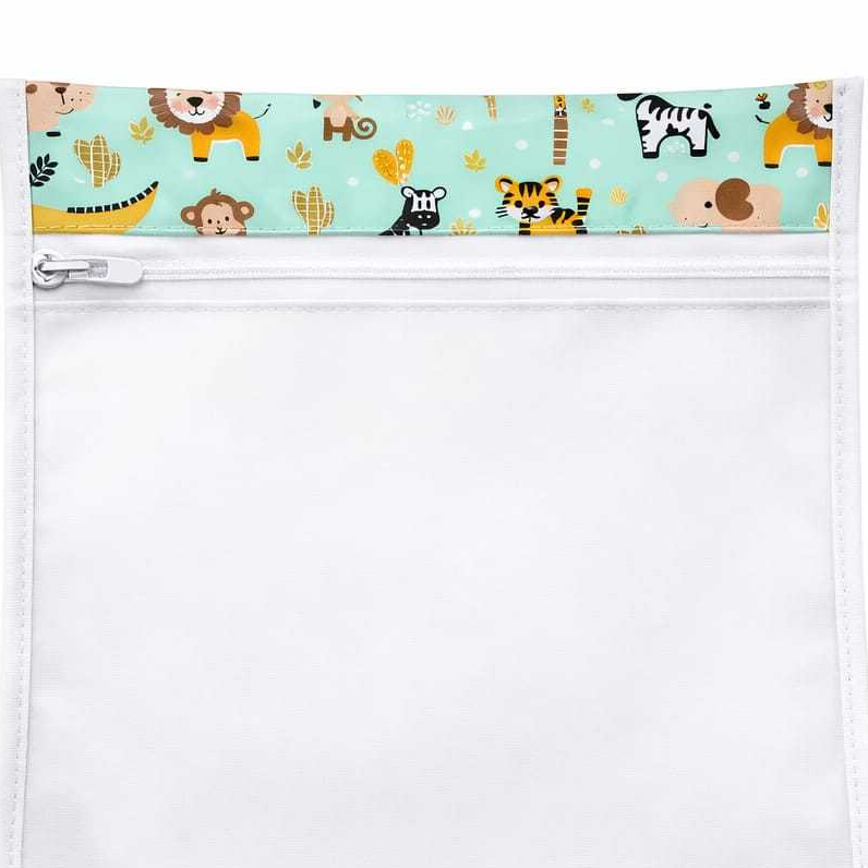 kit 5 Saquinhos Organizador Maternidade Multiuso para Roupas e Fraldas Estampa Safari