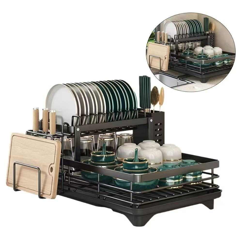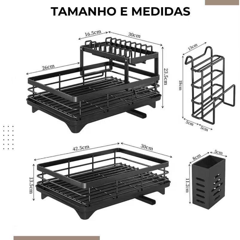 Escorredor de Louça Rack De Cozinha 2 Andares Preto haosin