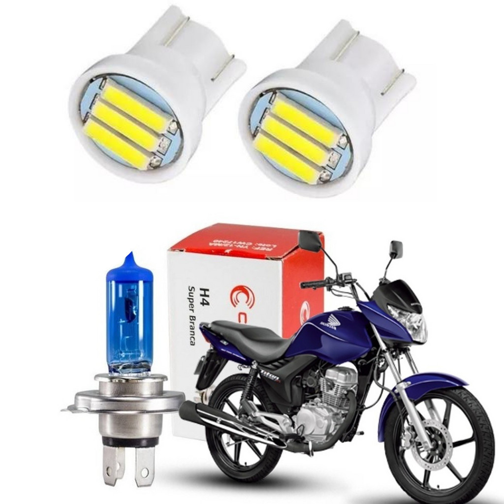 Lâmpada Super Branca H4 Moto Honda Titan Fan Cg 125 150 160 E Par De Pingo 3 leds