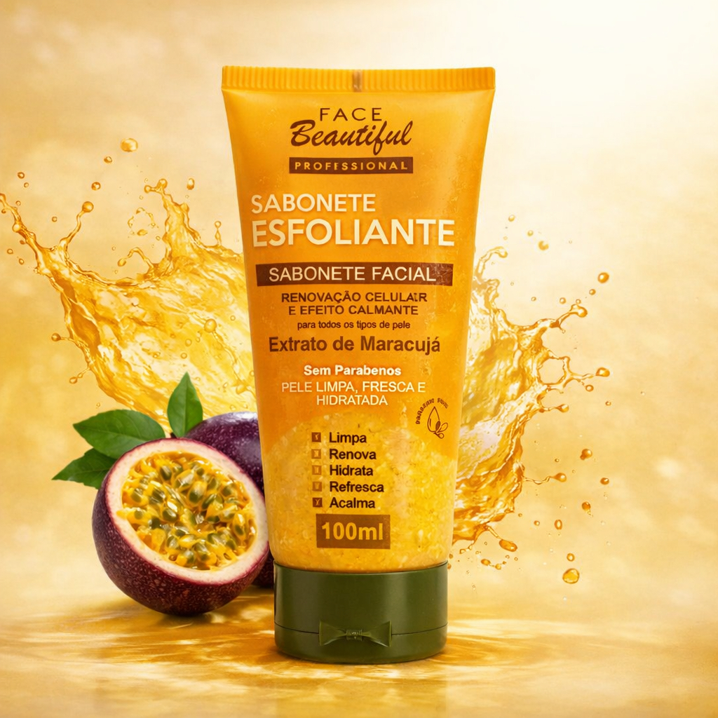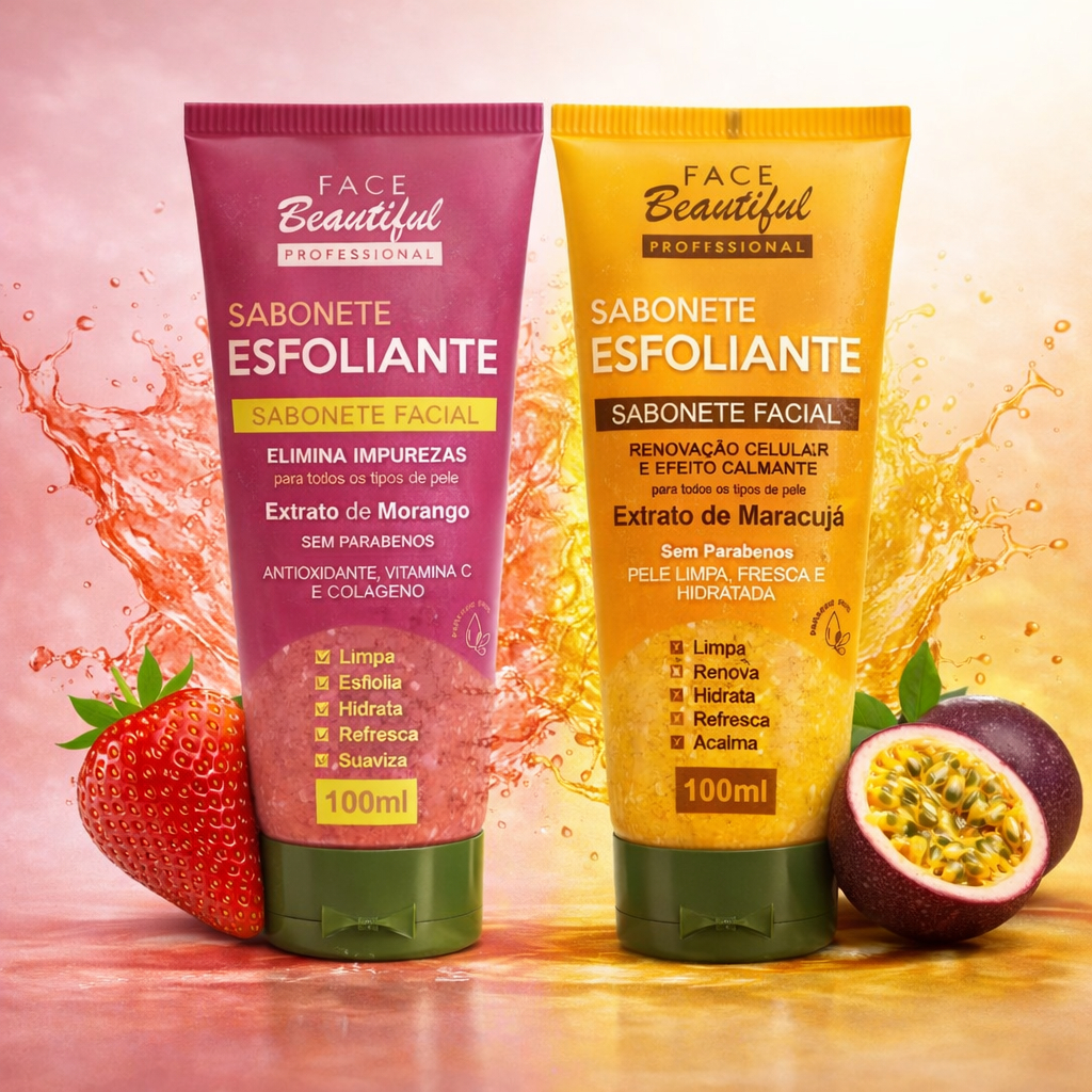 Sabonete Facial Esfoliante Morango Maracuja Face Beautiful 100ml – Limpa, Hidrata e Remove Impurezas