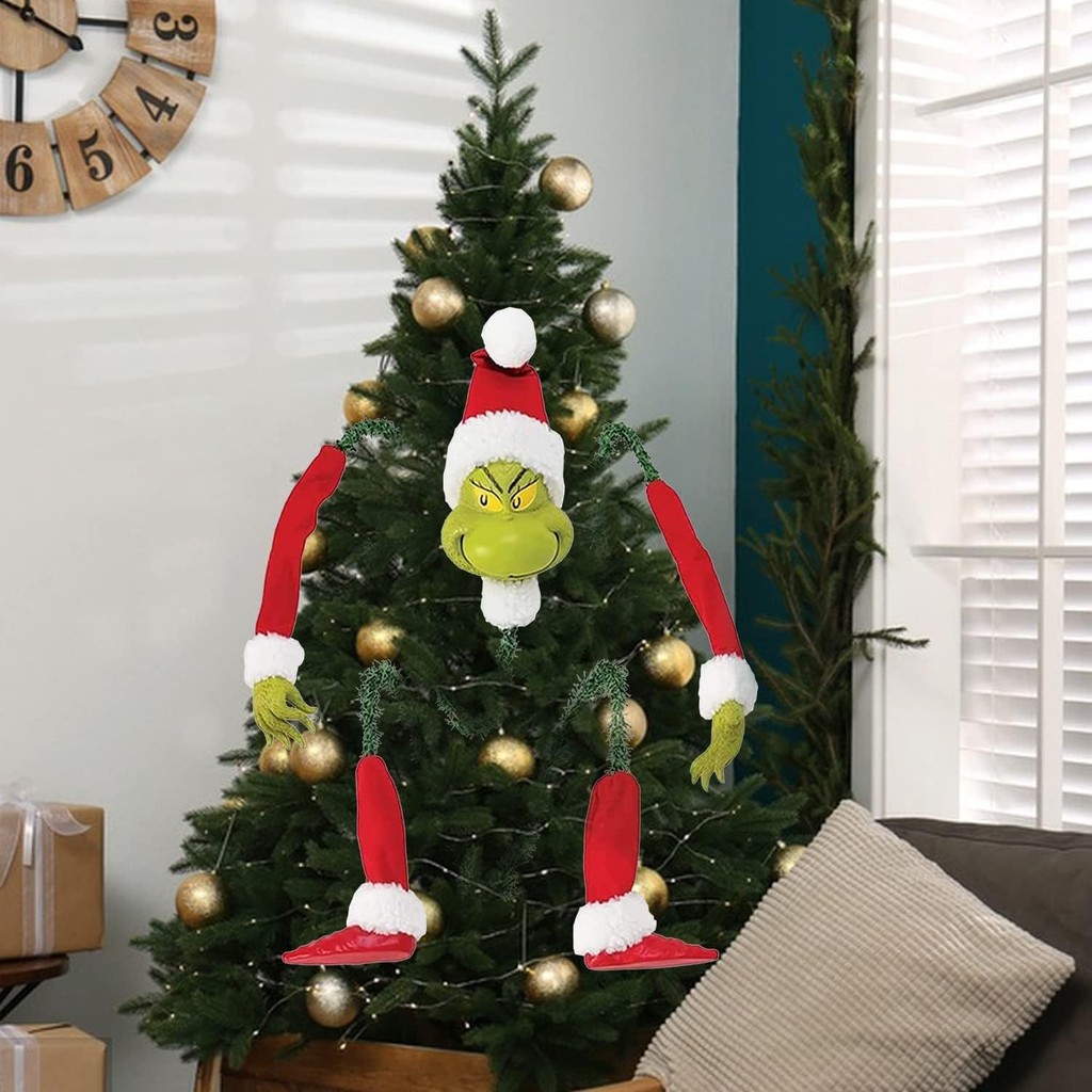 Decoração De Natal Grinch Verde Pernas Artificiais Árvore Santa Elf Enfeites De Casa