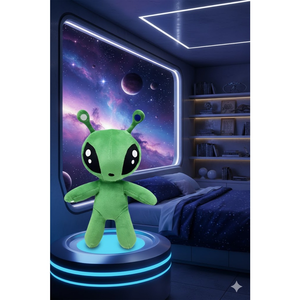Boneco Et Extraterrestre Alienígena Anteninha Premium Pelúcia Verde 25 Cm