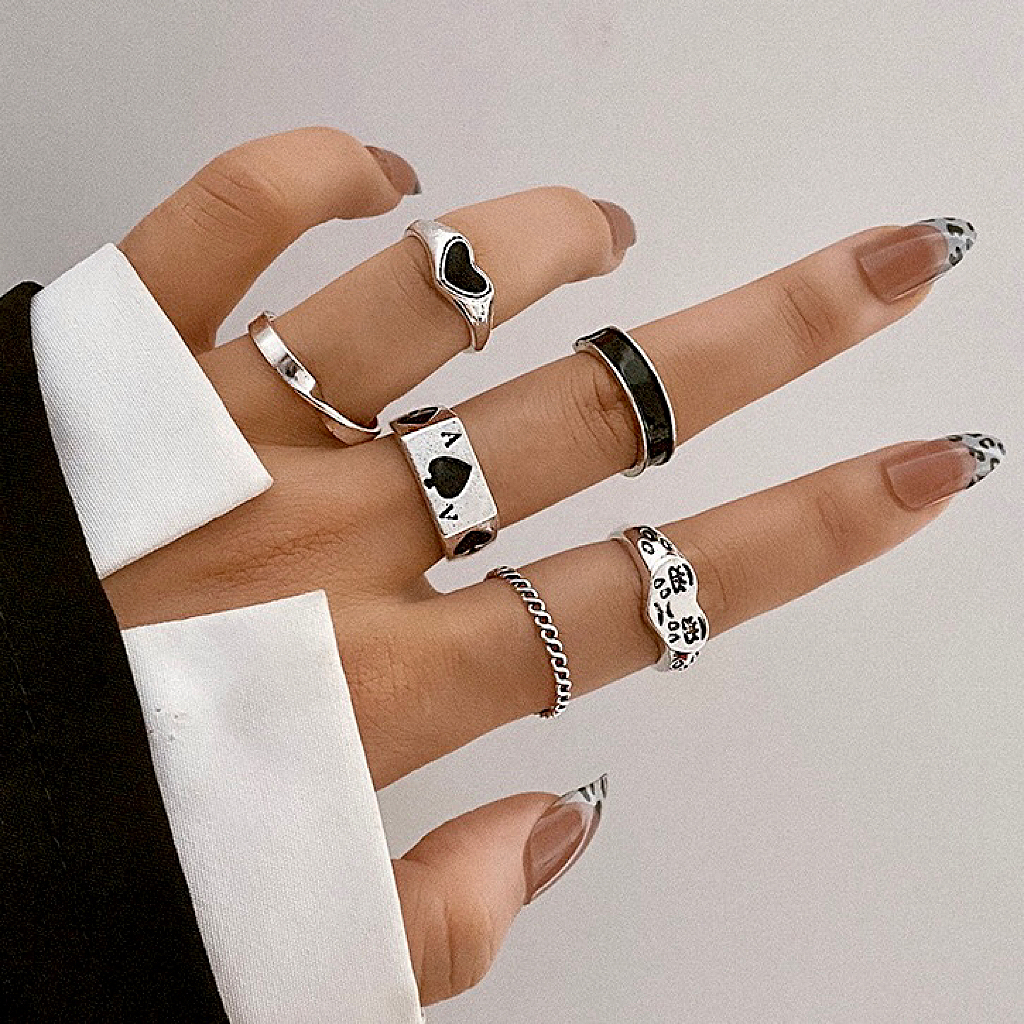 Anel De Prata Punk Para Mulheres Conjunto De Anel De Dedo Jóias Femininas Acessórios De Moda Presente De Jóias