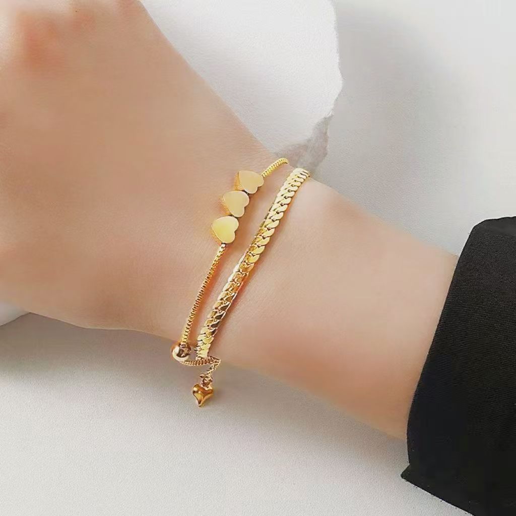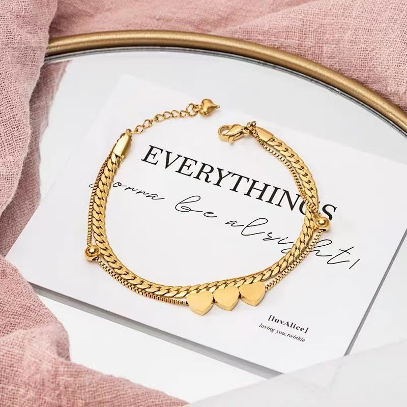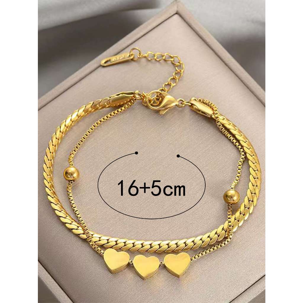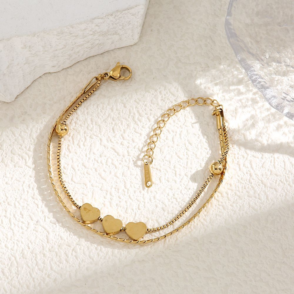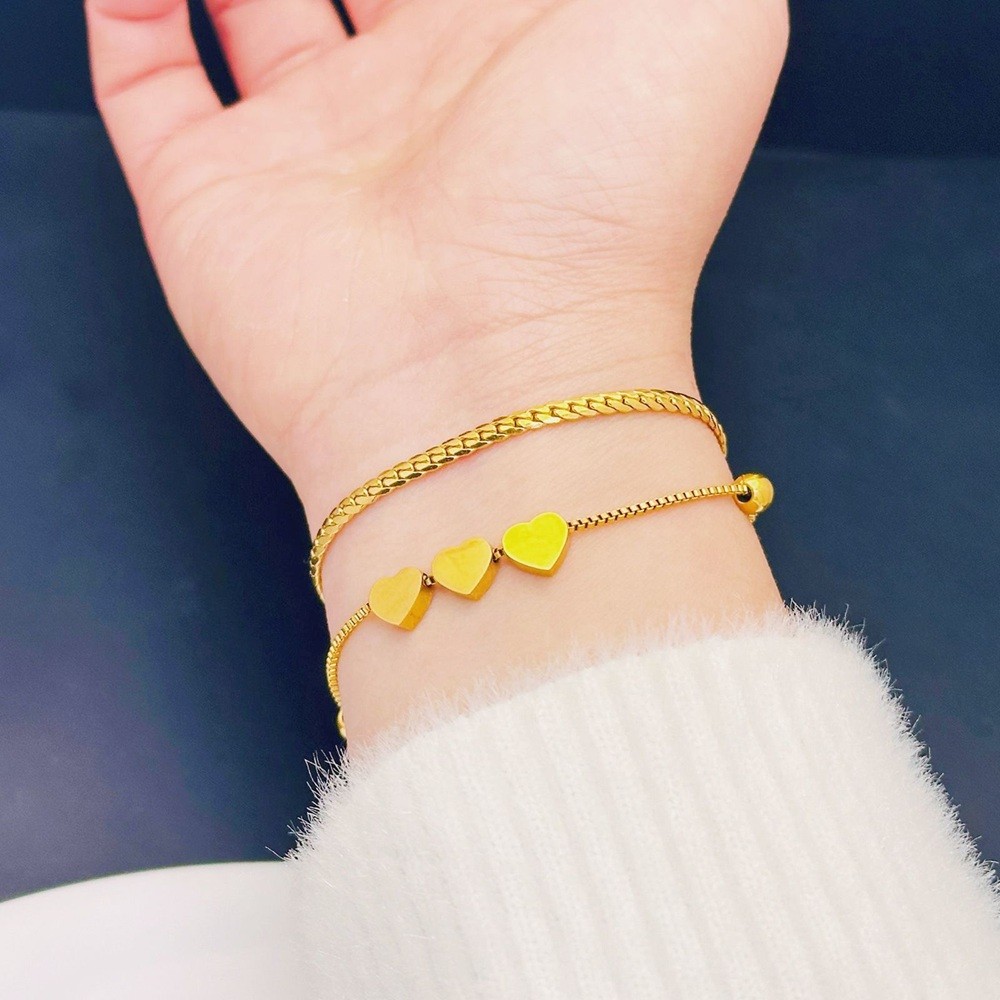 Pulseira de contas redondas em formato de coração banhada a ouro 18K em aço inoxidável que não desbota joia feminina