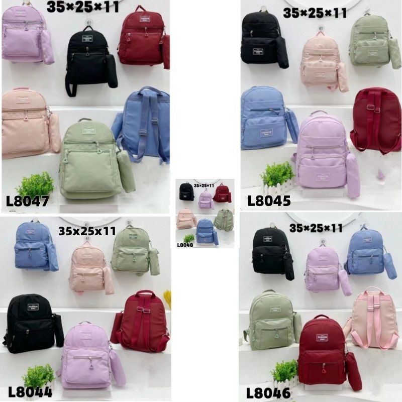 Mochila Escolar Com Estojo De Estudante Feminina Nylon Impermeavel L8044-L8048