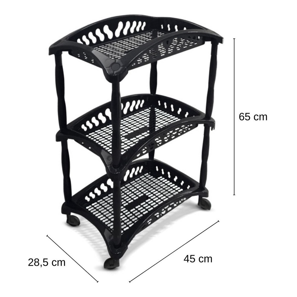 Organizador Vertical Triplo Fruteira Preto 3 Andares Cestos Com Rodinhas