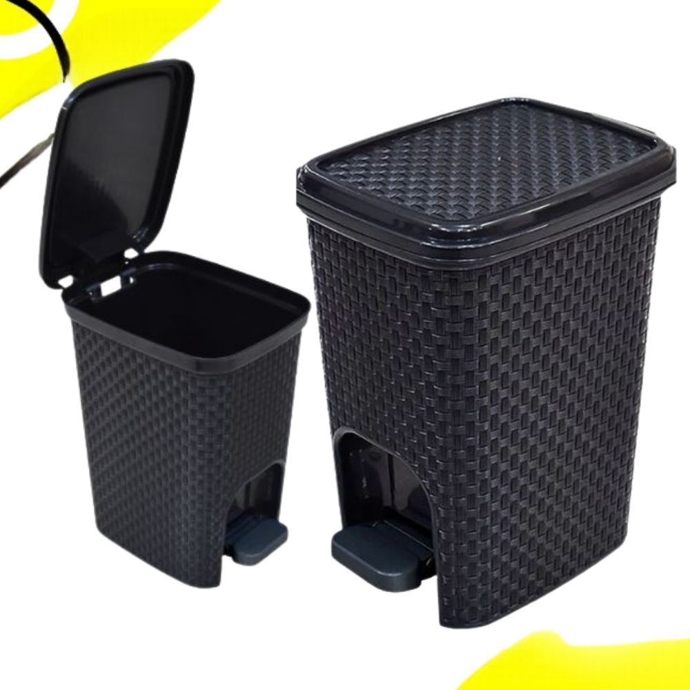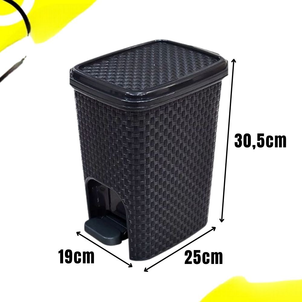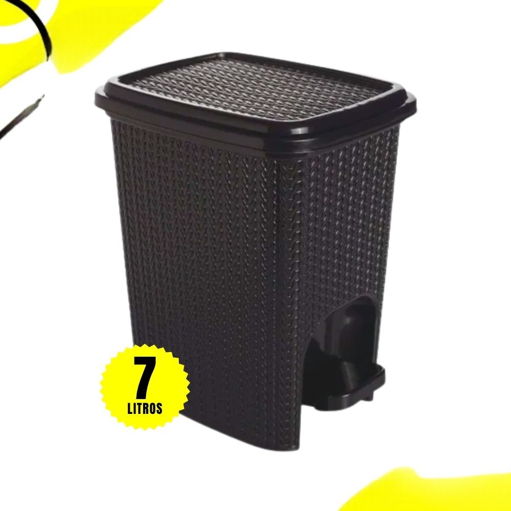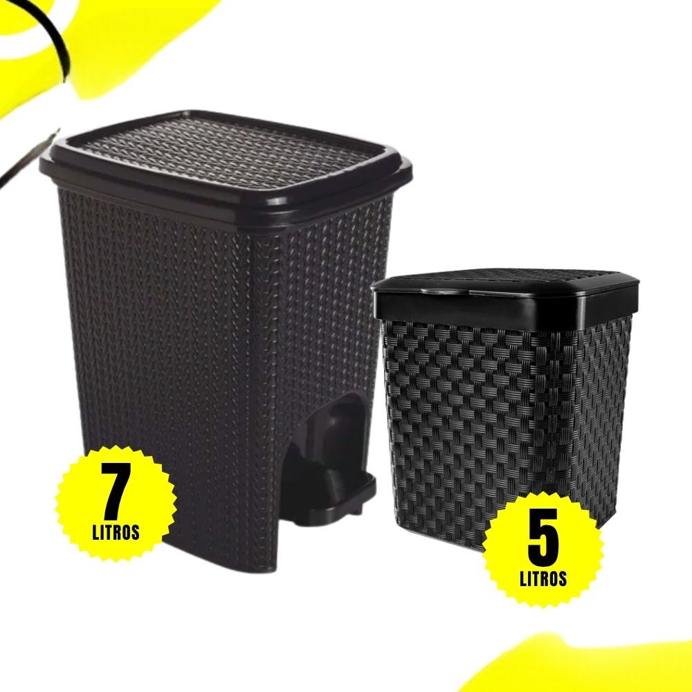 Kit Lixeira Rattan Cesto 7 Litros com Pedal + Lixeira Pia Rattan 5 Litros