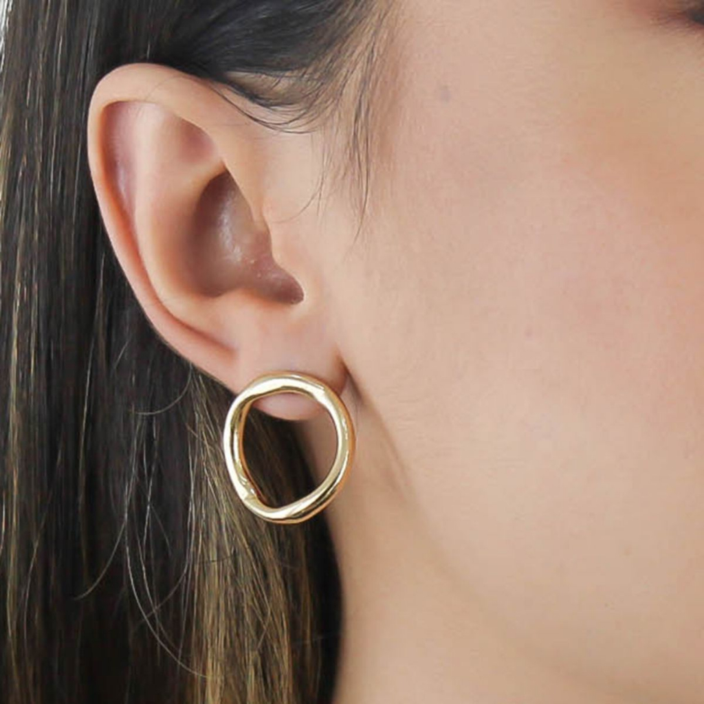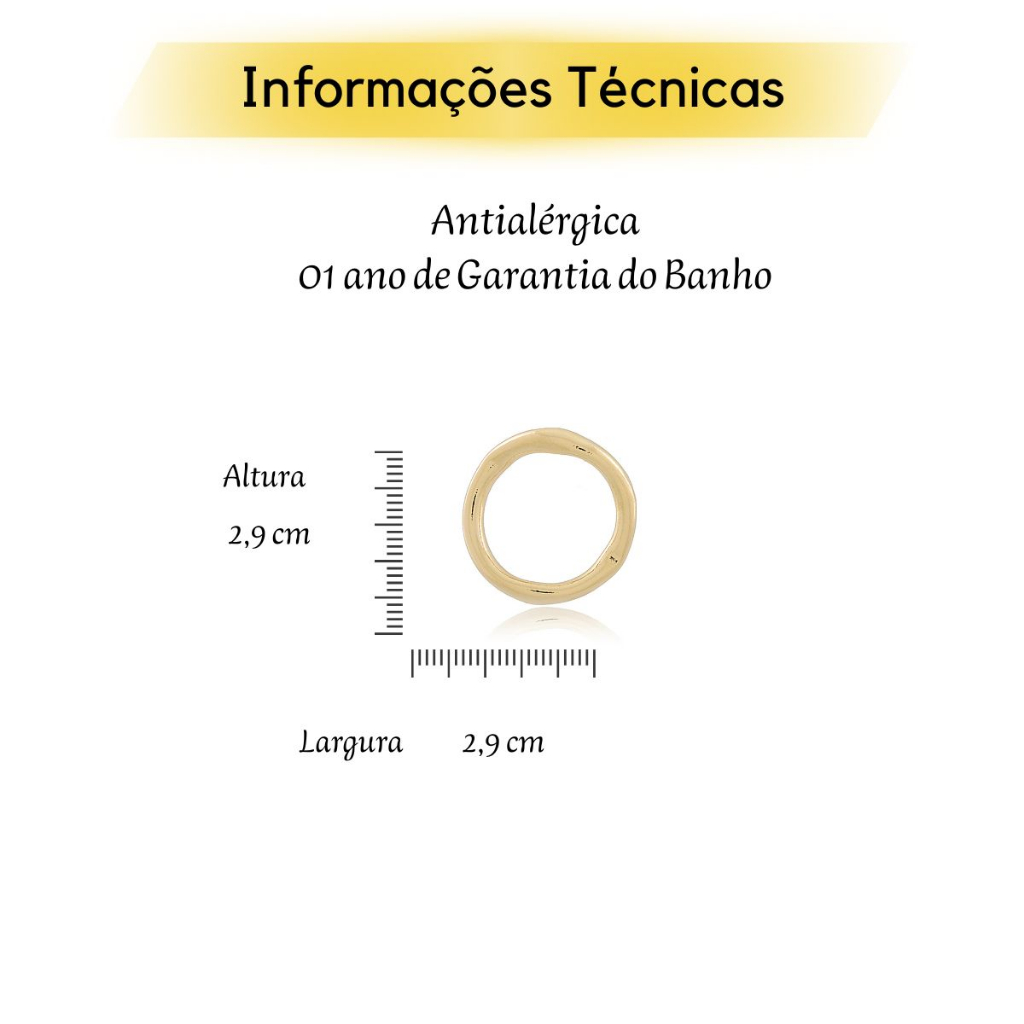 Brinco de Argola Ondulada Semi Joia Banhado Ouro 18k