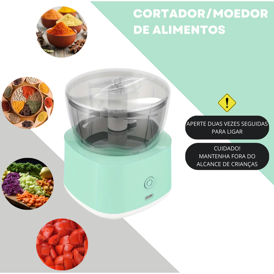 Cortador de Alimentos Moedores Pequeno Elétrico Sem Fio com Fundo Antiderrapante e Lâmina de Aço Inoxidável 300ml
