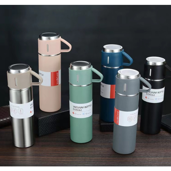 Garrafa Termica Inox 500ml Agua ou Cafe Quente & Frio Com Tampa Copinho Academia Escolar