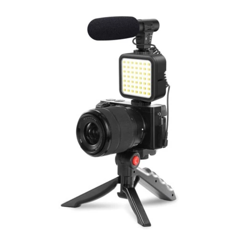 Kit Youtuber Tripe Vlog Live Suporte Celular Led com Microfone Fazer Vídeos