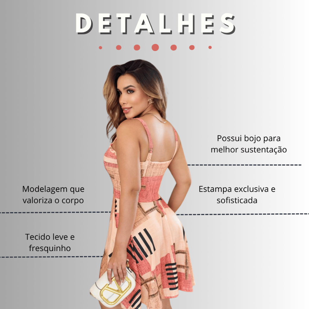 Vestido Trancinha Com Bojo Estampado Curto Soltinho