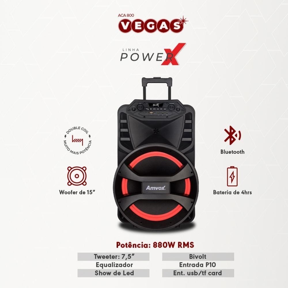 Caixa de Som Amplificada Amvox ACA880 Vegas 880W Bluetooth