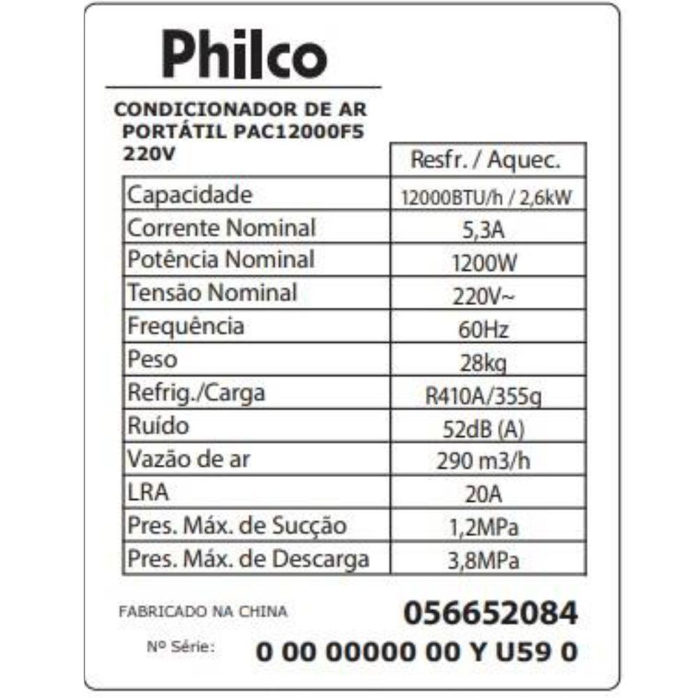 Ar-Condicionado Portátil Philco 12.000 BTUs PAC12000F5 Frio